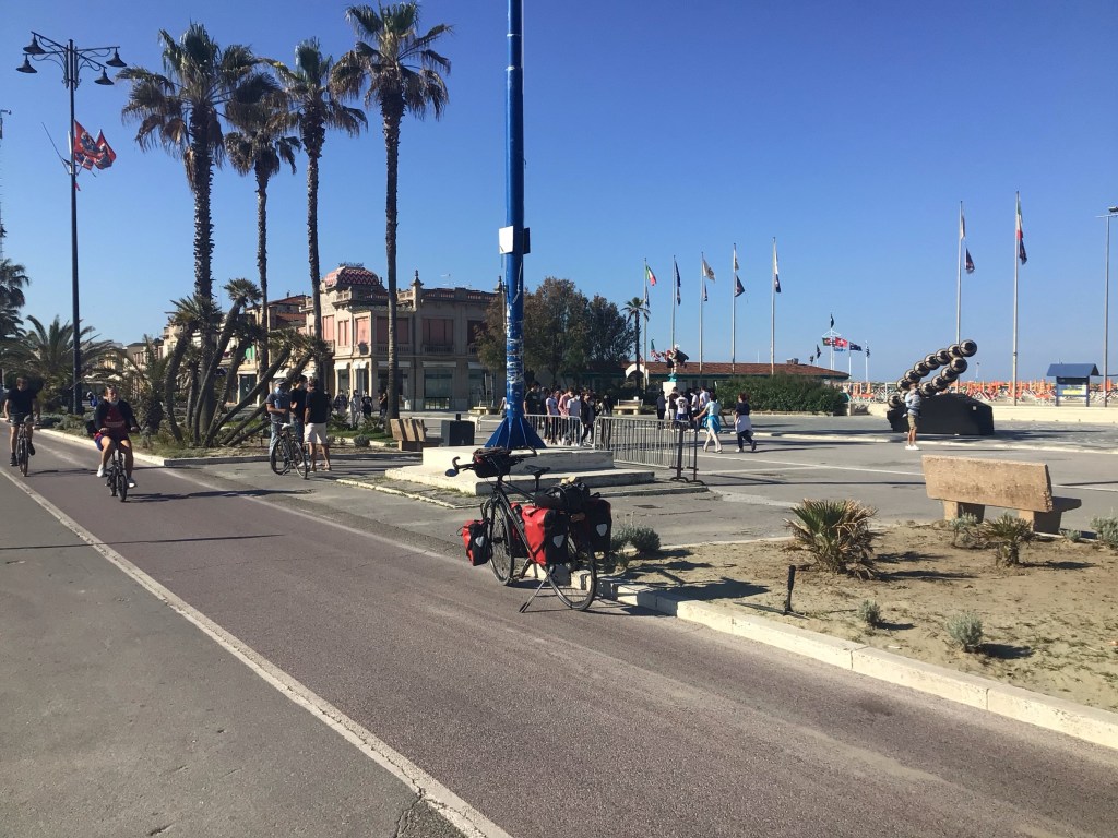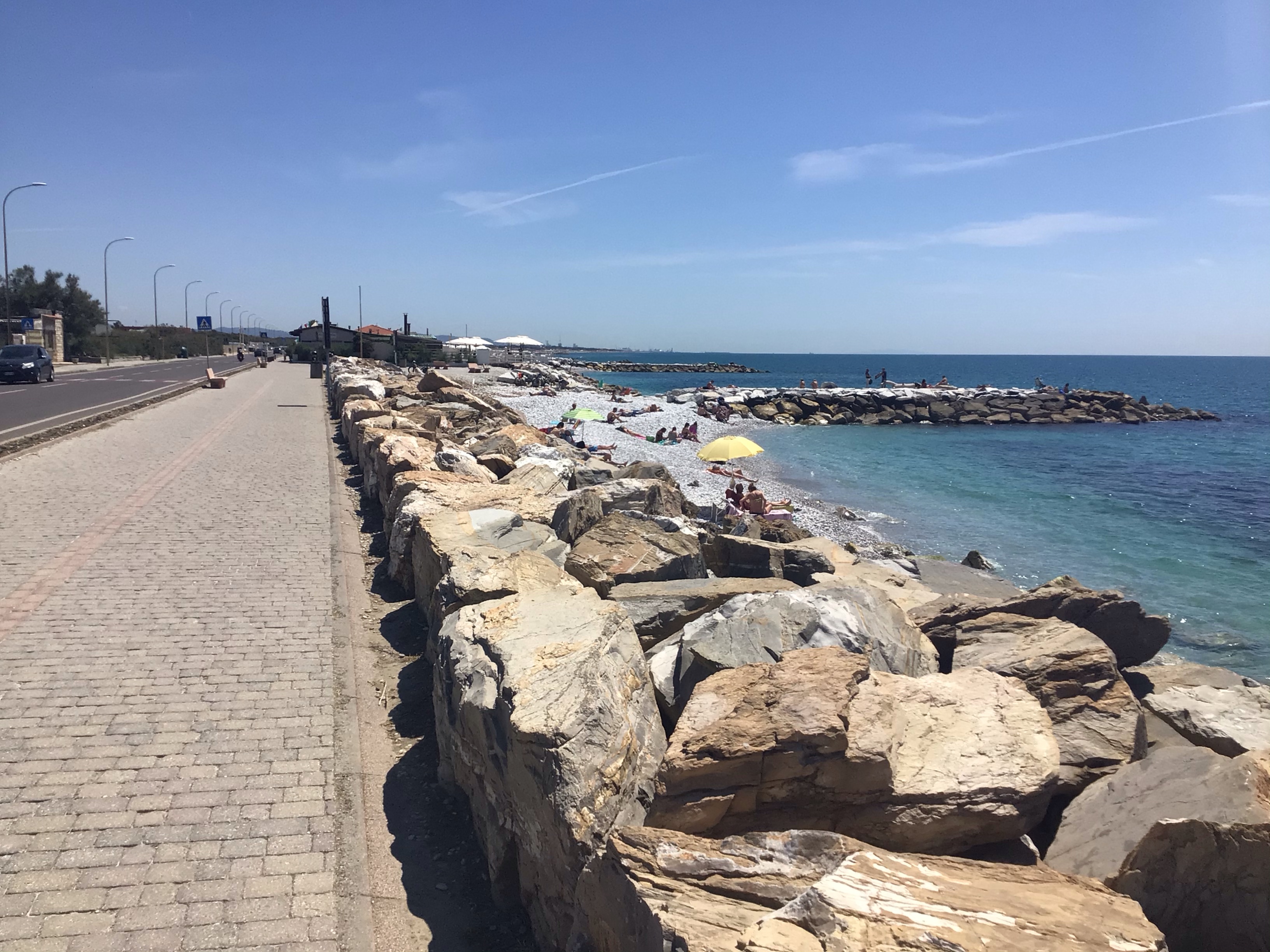 Je quitte cet endroit bien sympathique pour reprendre le bord de mer en suivant une piste cyclable le long de la route SP224 pour rejoindre Livourne. Le moindre recoin est squatté pour poser sa serviette.