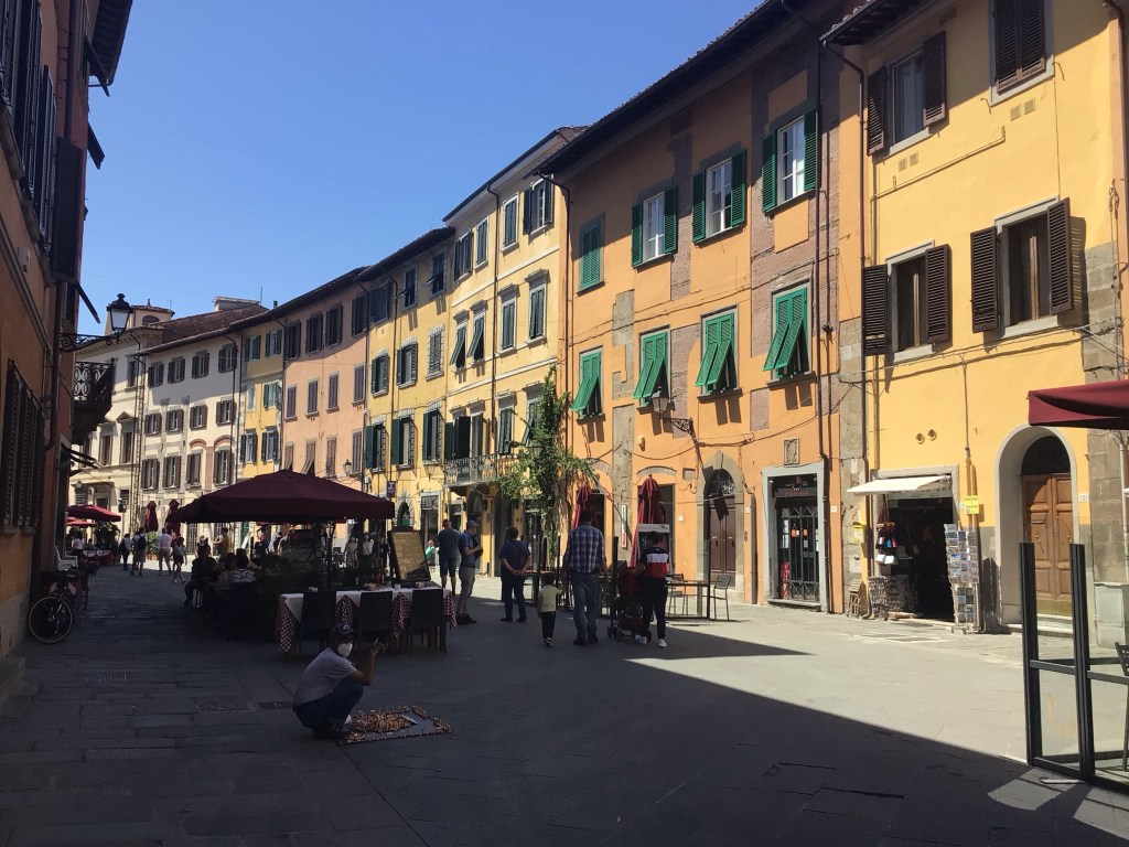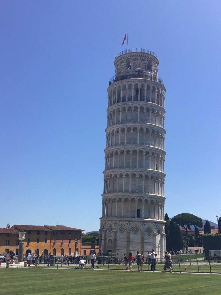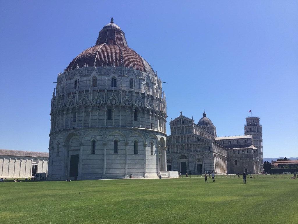 Et puis, j’ai à nouveau la chance de voir deux chevreuils qui longent la piste que j’emprunte avant de s’enfoncer à nouveau dans les frondaisons. Par contre, alors que j’ai emprunté des pistes sans trop suivre l’itinéraire de mon GPS, j’ai la mauvaise surprise de tomber sur un portail fermé à clé. Heureusement, une belle villa jouxte l’allée et je demande aux propriétaires, un couple de personnes âgées avec leur petite fille, de m’ouvrir leur portillon et de traverser leur propriété afin de pouvoir rejoindre la route. Je m’arrête un plus loin dans un café sympa pour y boire mon café. Puis je reprends la route vers Pisa qui n’est plus très loin. J’arrive sur le site qui est toujours aussi grandiose …
