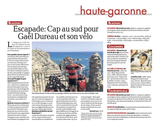 Auparavant, après m’être connecté à la Wi-Fi, je récupère l’article paru sur La Dépêche du Midi de ce dimanche.