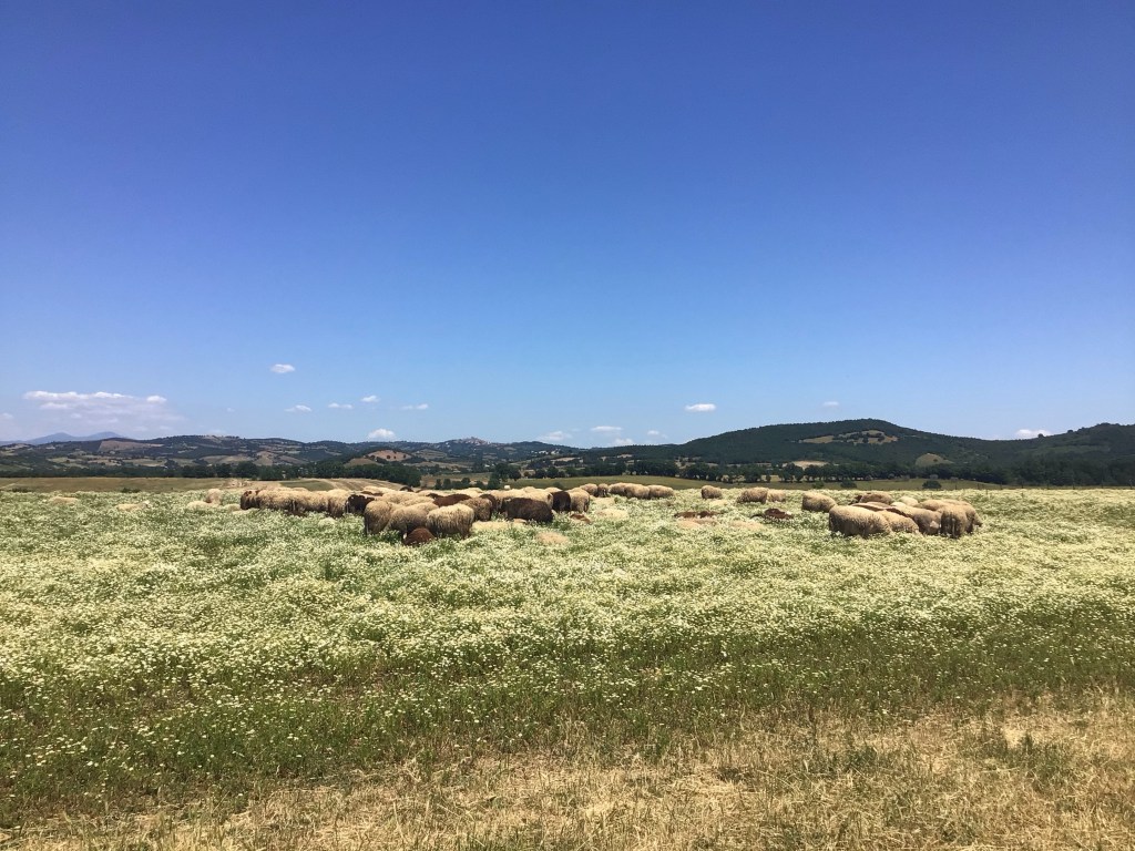 Je repars et admire la vue sur les collines environnantes plantées de champs d’oliviers, de vignes et de blés. Au loin, je devine la mer à qui je fais des infidèlités.