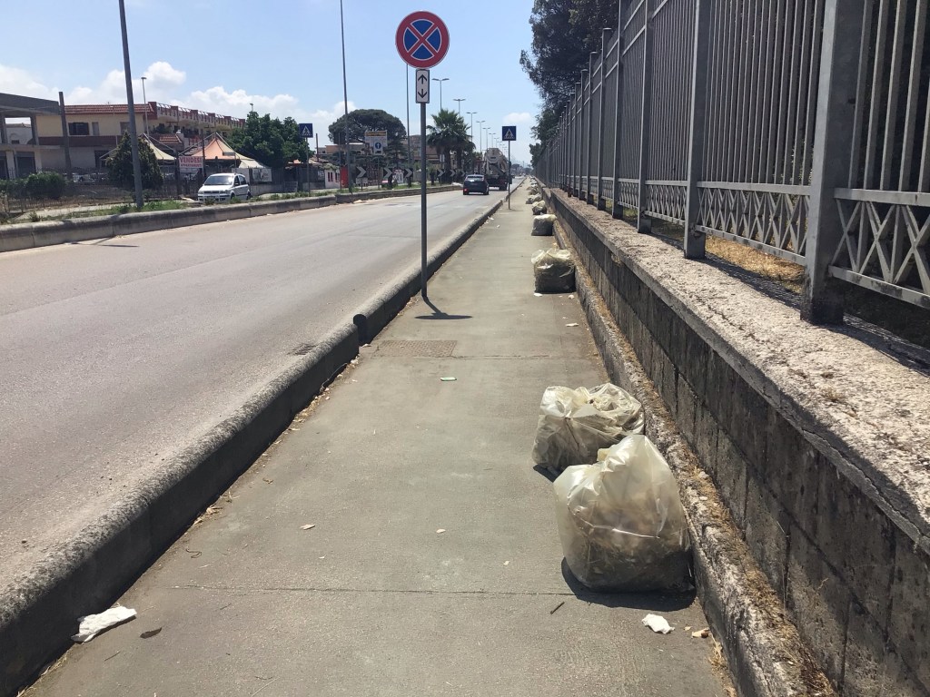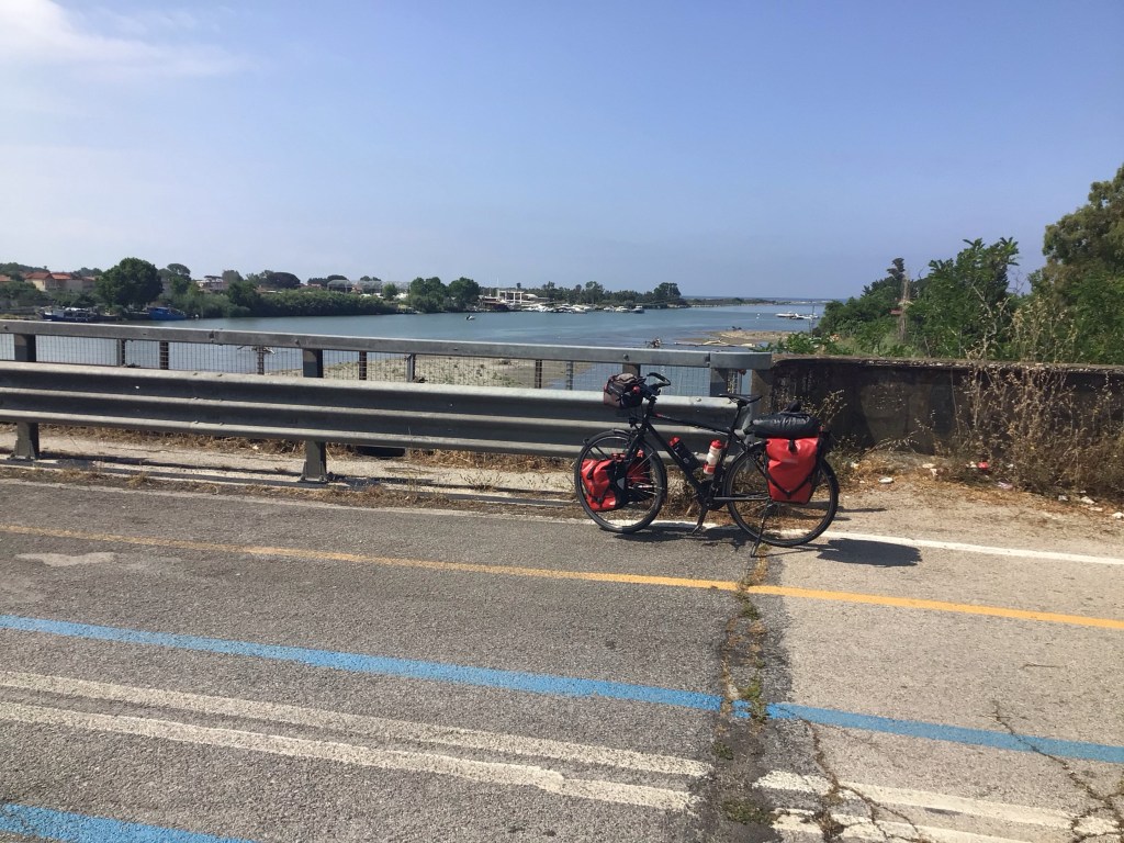 Je finis par trouver un café où je m’arrête pour ma pause. J’en profite aussi pour réserver un AirB&B sur Napoli; les Warmshowers contactés n’ont soit pas répondu, soit pas dispo. Je n’ai vraiment pas de bol avec ce système. Je reprends ma route, cette fois sur une piste cyclable mais jonchée de sacs ordures et plantée de panneaux de signalisation.