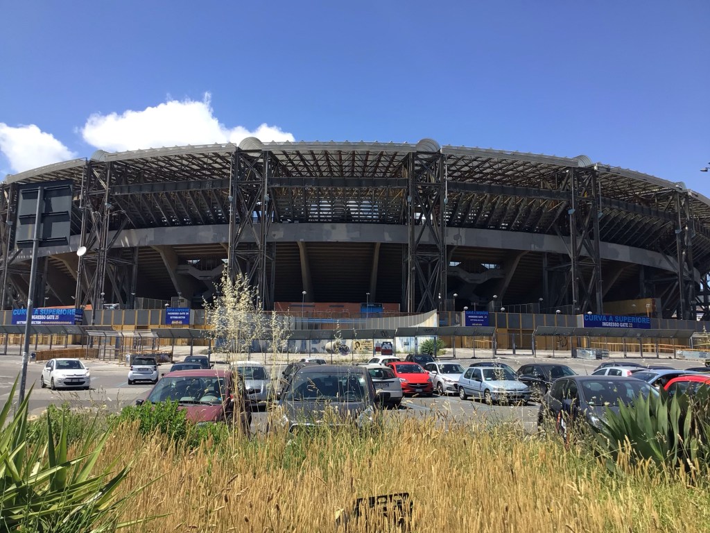 Par contre, l’itinéraire me fait couper à travers la colline avec une belle montée puis descente pour enfin arriver sur la baie de Napoli. Au passage, je remarque un immense stade sur ma gauche. Je fais le détour pour zieuter le « Stadio Diego Armando Maradona » (ex San Paolo).