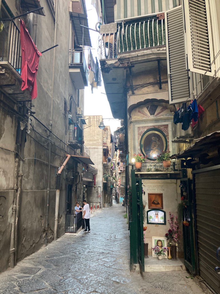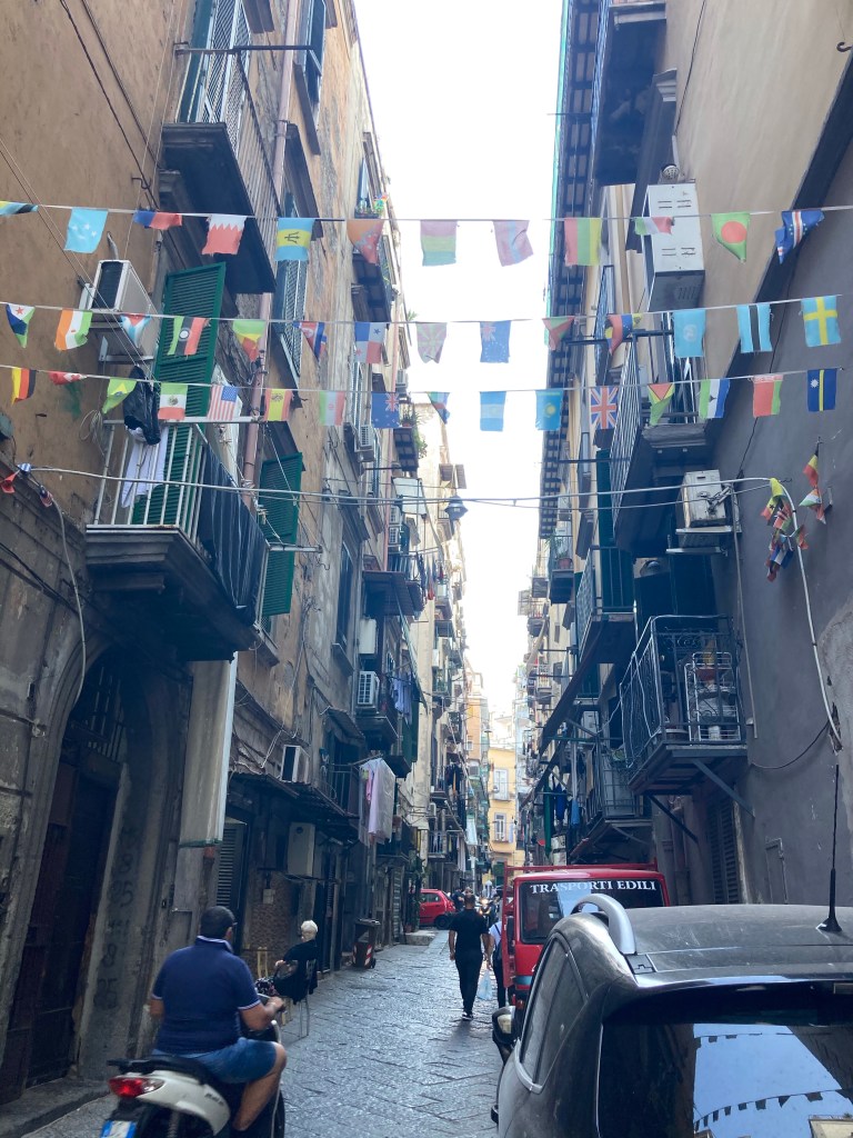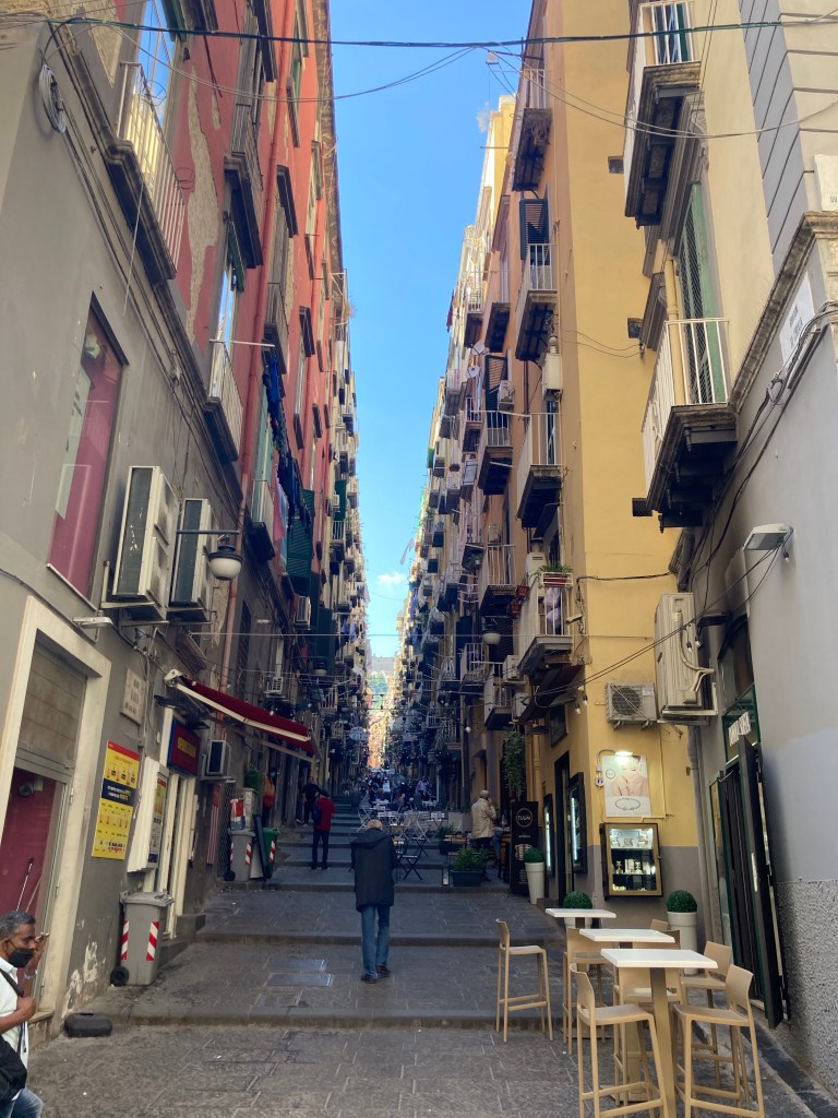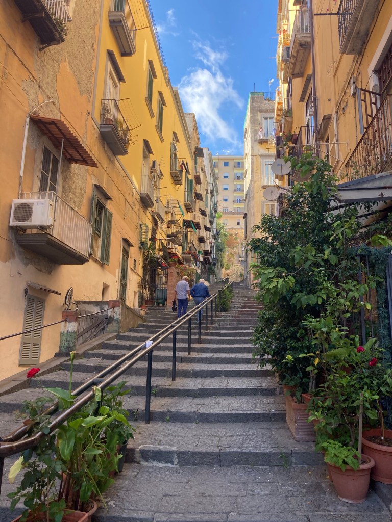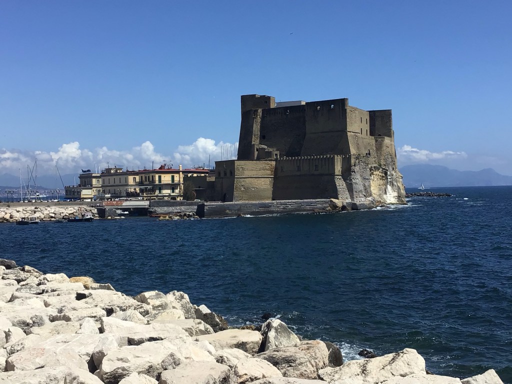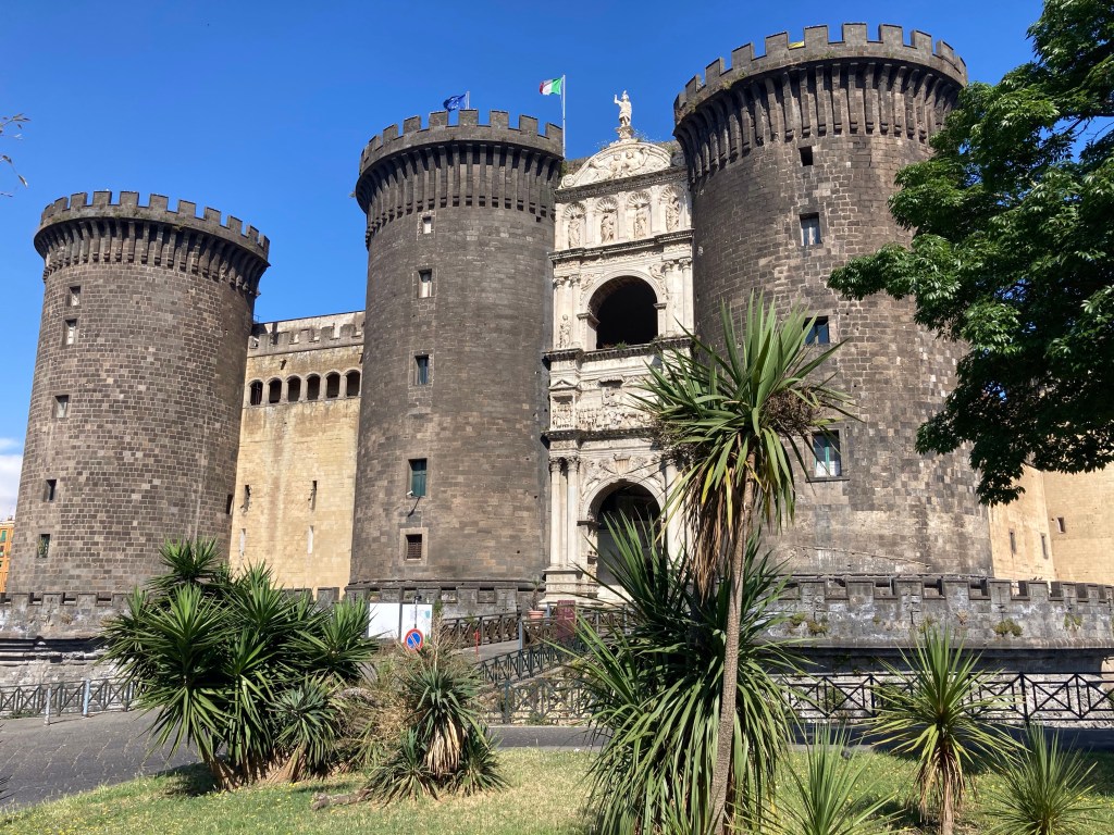 A 15h pétantes, je suis devant l’entrée de mon AirB&B qui est une auberge de jeunesse située au 6é et 7é étage d’un immeuble au bord du port maritime et presqu’au pied du Castel Nuovo, immense forteresse défendant l’accès de la vieille ville.