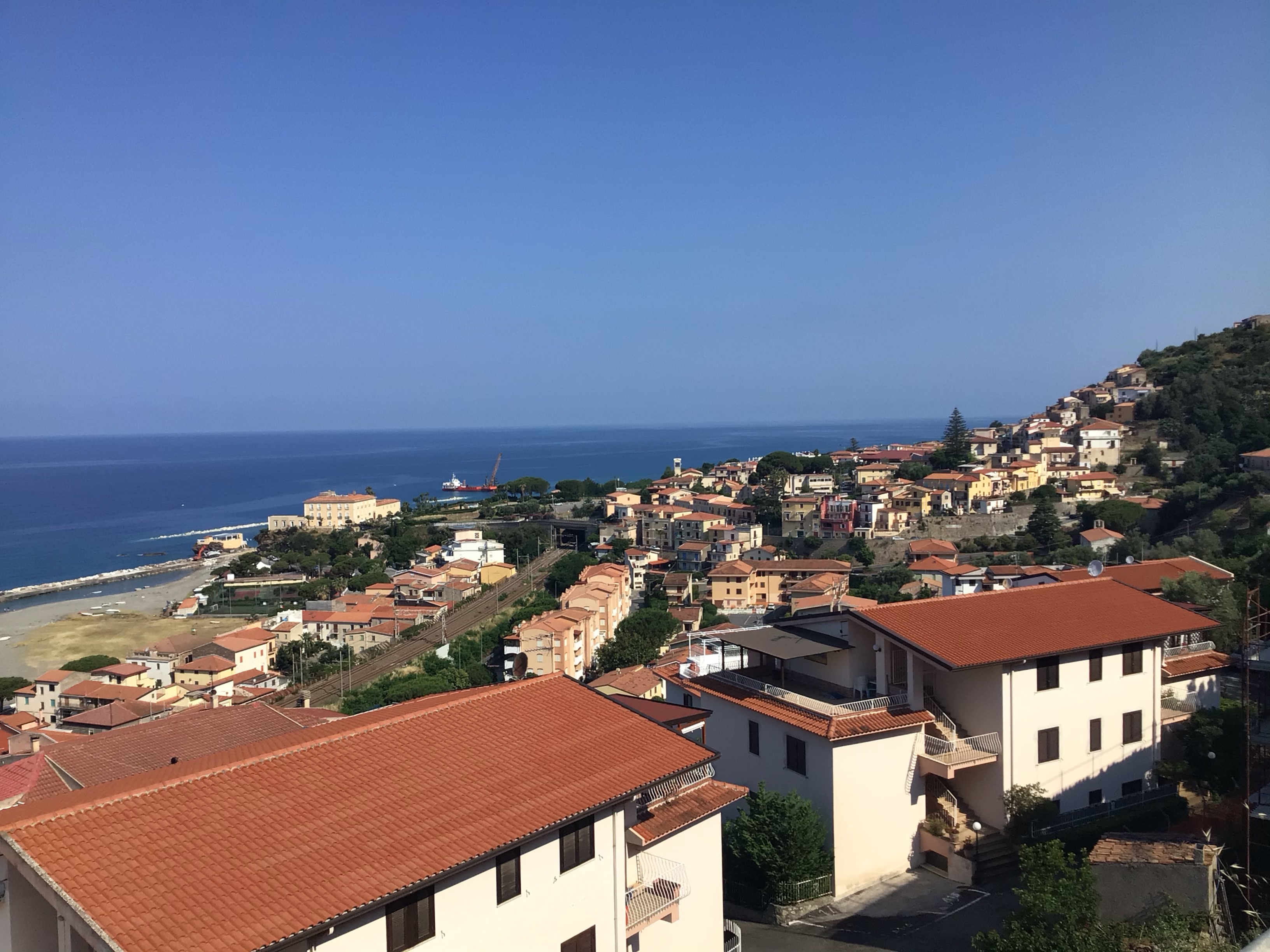 Je repars. Peu avant la ville de Coreca et alors que j’allais emprunter un tunnel de près de 978 mètres exactement, un automobiliste au volant d’une Alfa-Roméo me klaxonne et se met à ma hauteur en me disant que le tunnel est interdit au vélo et qu’il faut que j’emprunte une route en contrebas. Vraiment cool les gens aussi ! Demi-tour donc et je passe par la route éboulée en contrebas. D’ailleurs, je n’ai plus d’éclairage depuis les gros orages d’il y a 3 jours. Décidément, je suis maffré avec l’électricité. Après ces émotions, je m’arrête déguster une glace Cioccolata Fondente e Melone à Campora San Giovanni. Les 2 serveurs sont à nouveau très sympa et essaie de me parler francese. Je repars pour la dernière ligne droite. Il me faut juste trouver un peu d’eau, ma Peroni et du chocolat … Et bien évidemment un endroit où dormir. Cela devrait le faire. En effet, c’est impressionnant le nombre d’hôtels, bars, résidences, maisons à louer ou à vendre sur cette côte calabraise. Ça sent vraiment le sapin par ici …