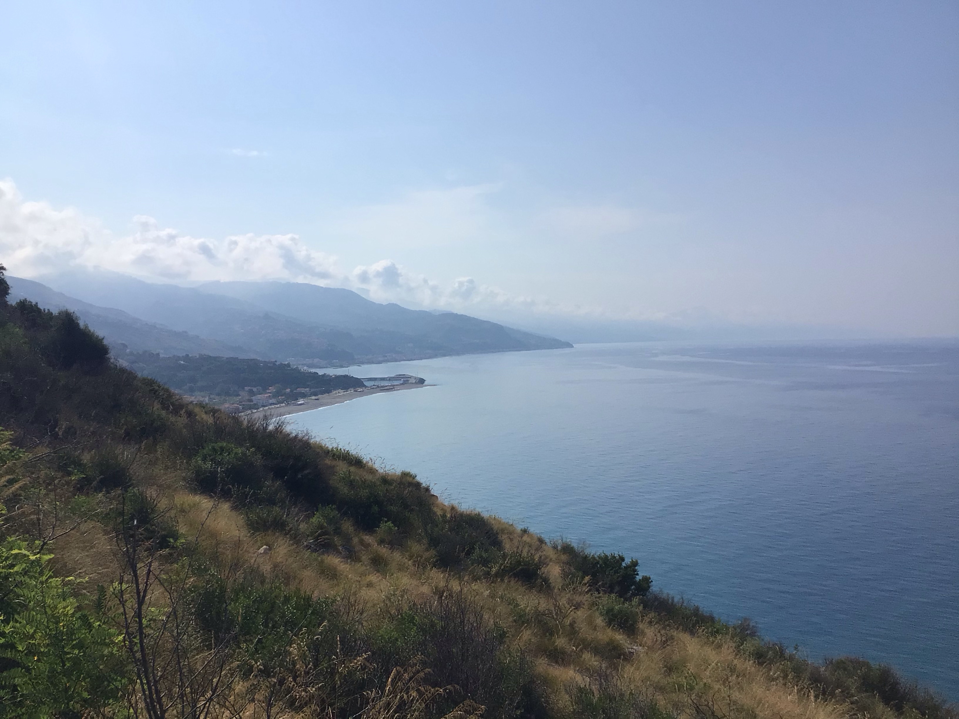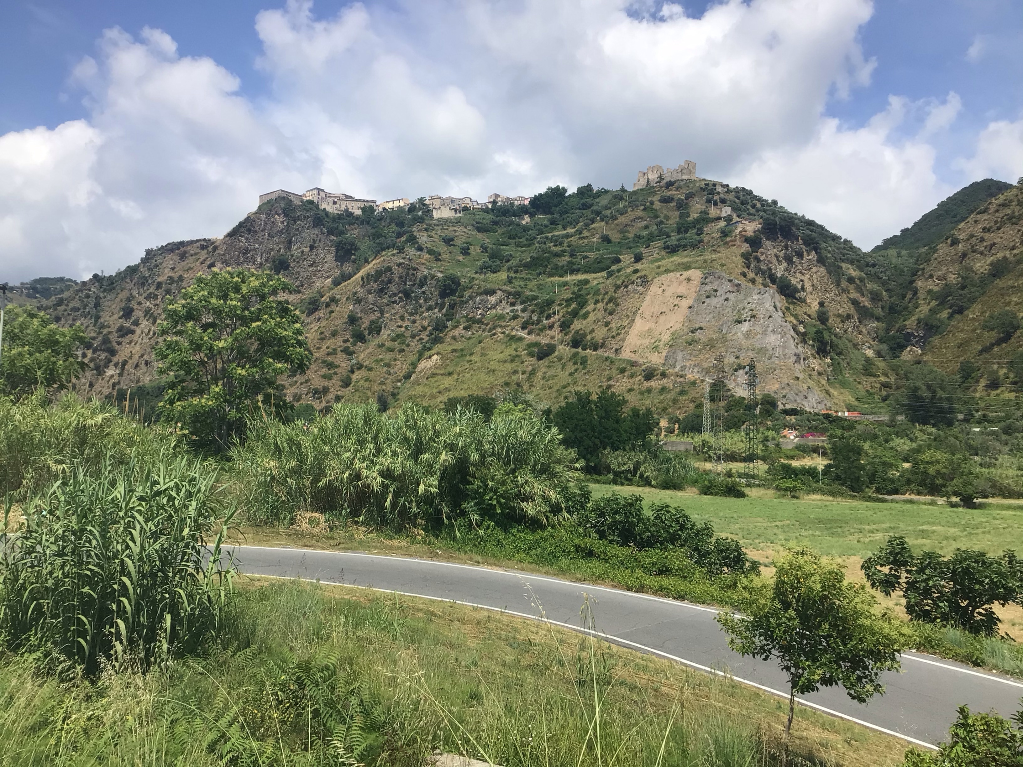 Je n’ai pas d’autre choix que de suivre la route SS18. Par rapport aux jours précédents, c’est beaucoup moins calme. Ça circule beaucoup. Je roule sur le côté en essayant de prendre la tangente dès que possible. La côte est escarpée et le relief pour le moins vallonné.