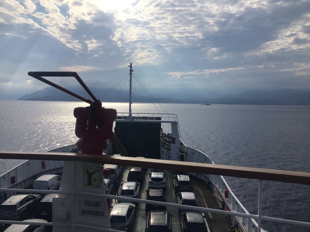 Après avoir eu de la compagnie hier soir (le chaton de ce couple n’a pas voulu se faire photographier), j’ai donc quitté ce bivouac sicilien dès 7h du mat’ et à 8h j’étais dans le traversier pour revenir à Vila San Giovani.