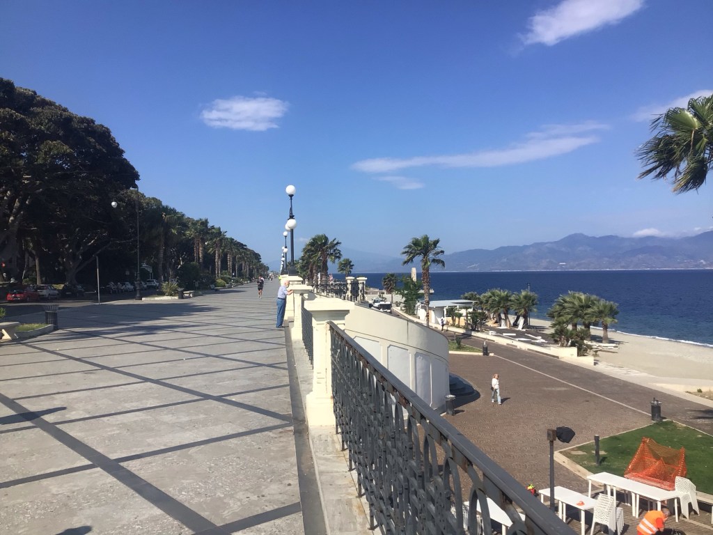Je reviens donc à mon point de départ et reprends ma route SS18 en direction de l’est. Après avoir parcouru 13kms en Sicile ce matin uniquement en milieu urbain, je continue ce périple urbain sur le continent. J’ai la chance de circuler à un moment sur la Croisette de Gallico Marina ce qui très agréable.