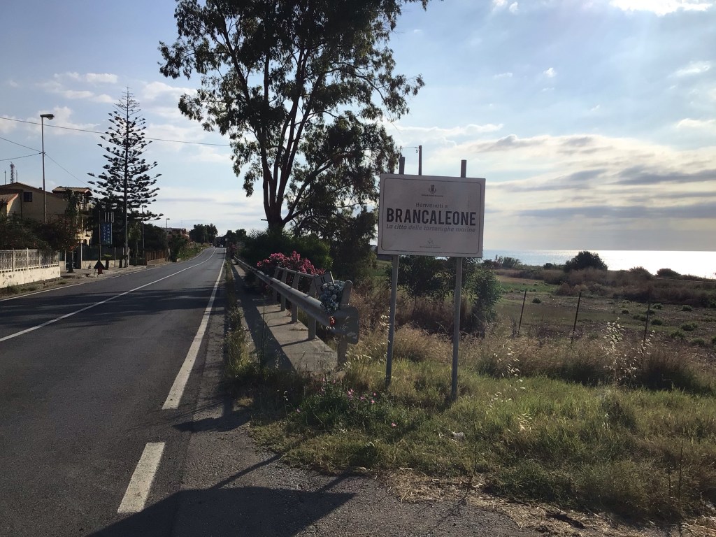Après cet intermède, je me pose boire mon café à Locri qui se situe pratiquement au centre du pied de la botte. Je vais bifurquer sur la droite pour monter au village haut perché de Gerace. Ça grimpe à 5% environ pendant une dizaine de bornes et le dernier kilo est indiqué à 10%. Cela me change de ma monotone route presque plate. Physiquement, c’est incroyable comme je suis facile. J’ai hâte de rentrer et de remonter sur mon Rocco, le nom de mon vélo de course italien de marque CBT (Ça Bande Terrible), modèle Obsession et couleur rouge bien sûr.