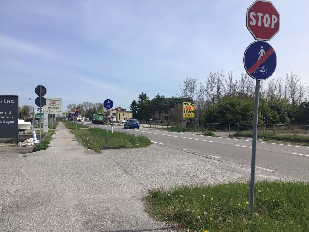 Je m’arrête ensuite à Cervignano pour y déjeuner. Vers 13h30, je reprends la route. J’ai hâte d’arriver à Trieste et de retrouver les bords de l’Adriatique. J’arrive, par une magnifique piste cyclable construite en empiétant sur les champs agricoles pendant le confinement (de sources sûres) à Ronchi dei Legionari, ville la plus à l’est avant de descendre plein sud. C’est quand même beaucoup plus agréable que d’avoir les tracteurs, camions et voitures qui vous collent au cul …