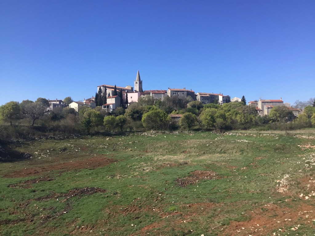 Après Pula, j’entame ma remontée de l’Istrie côté est. Au départ, j’emprunte de petites routes à l’intérieur des terres. Aucune route ne suit la côte truffée de fjords et de falaises (non, non, je vous rassure, je ne bogue pas, je ne suis pas revenu en Norvège). Je profite de la traversée d’un charmant village pour m’acheter quelques victuailles dans le café-commerce et me préparer un en-cas pour ce midi.