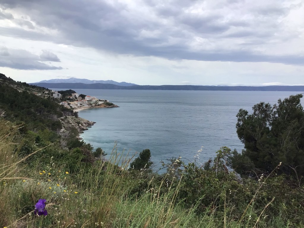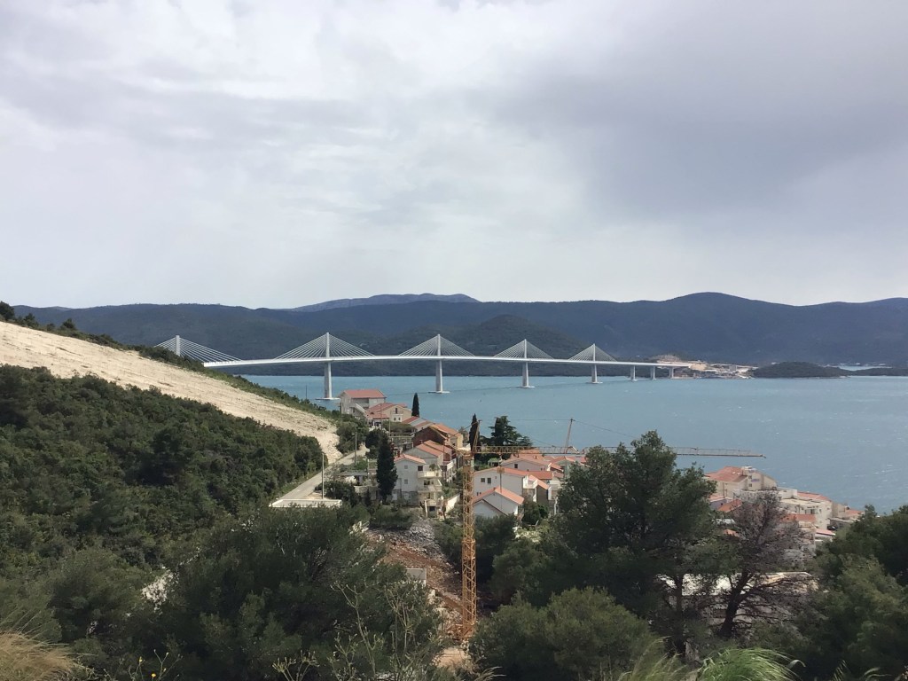Cela m’aurait redonné des forces pour contourner l’immense fjord qui se présente devant moi. Le vent s’engouffre dedans et j’ai parfois l’impression de retrouver le Bora. Un énorme chantier est en cours pour accéder à un immense ouvrage d’art (le pont de Millau en plus petit) qui franchira ce fjord d’un bord à l’autre de la Croatie.