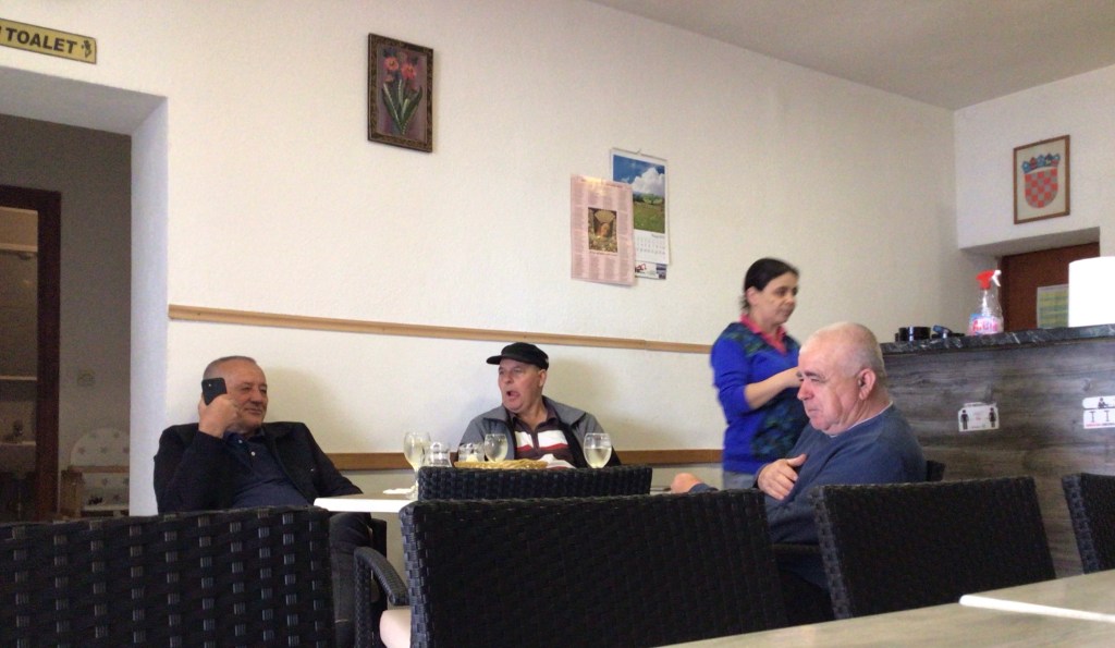 Je poursuis ma route et m’arrête prendre mon café à Zaostrog. La patronne bosse alors que son mari casse la croûte et picole avec ses potes. Elle est pas belle la vie !