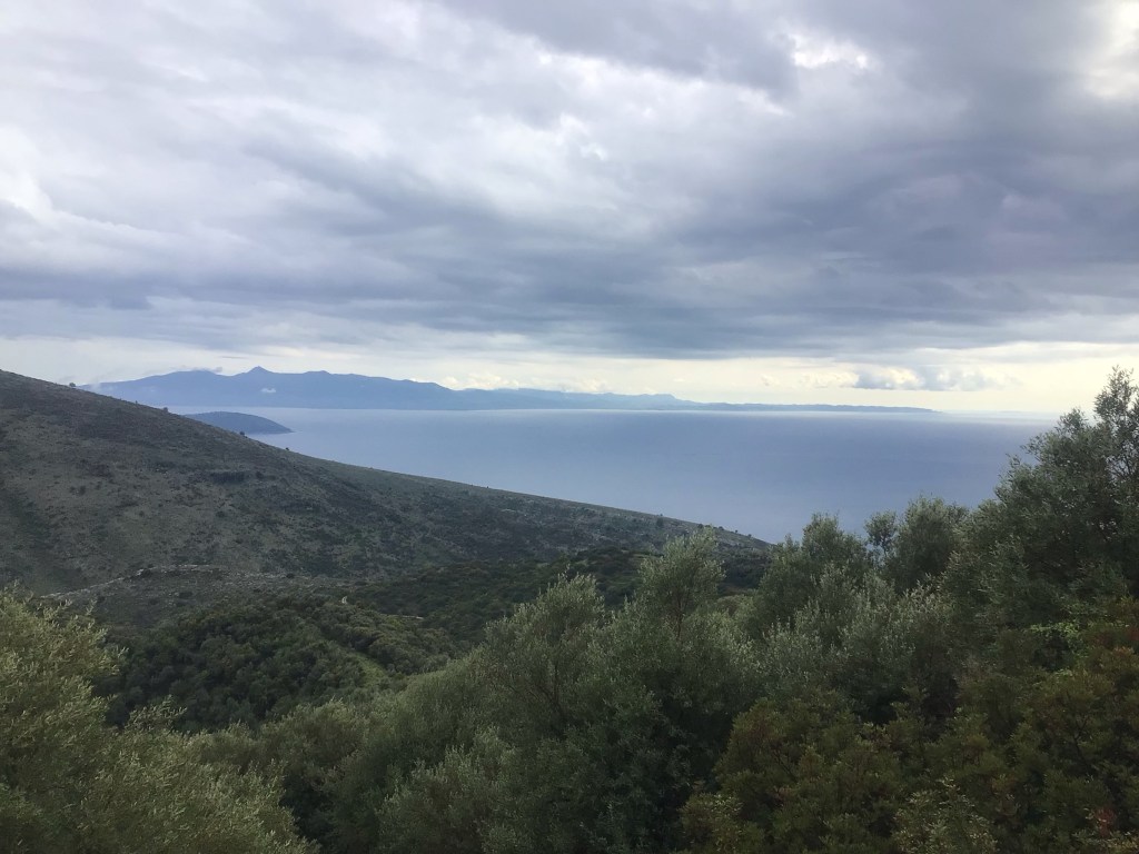 La chaîne a l’air de tenir le choc. J’espère qu’elle tiendra jusqu’à ma prochaine escale et que je trouverais un vélociste. En attendant, j’aperçois au loin l’île de Corfou. Je repense à ce que me disait mon ami Vincent avant de partir au sujet de cette île et de son vol direct vers Toulouse. Pour l’instant, je file dans une grande descente qui sent bon la fin des casse-pattes. Je croise un couple de jeunes hommes en Gravel. Décidément, cela devient à la mode. On se salue. J’ai presque failli les encourager avec un « Good luck ! ».