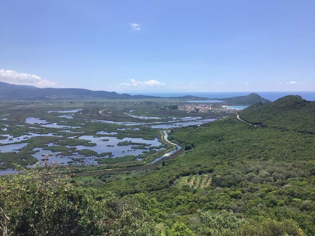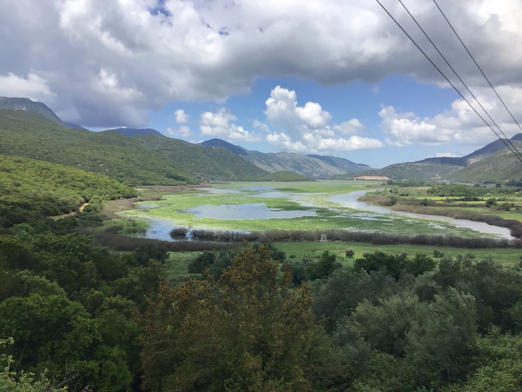 Je continue ma route en circulant sur la bande d’arrêt d’urgence et longeant les marais de Kalodiki.