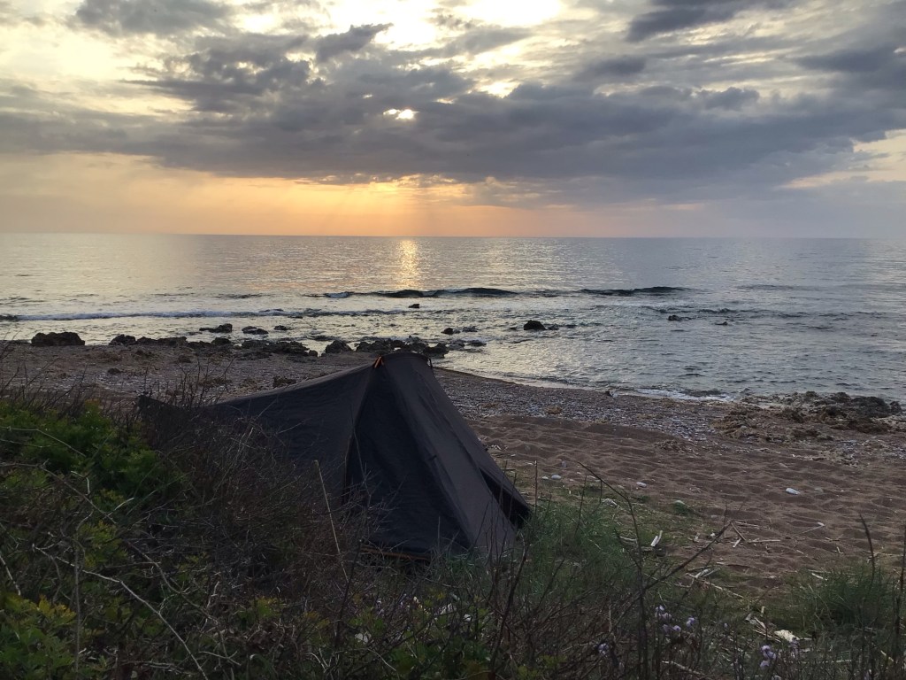 Je vais suivre la plage vers le promontoire et devrais trouver mon bonheur. Finalement, ce sera de l’autre côté que je finis par dégoter un tout petit emplacement en bordure de mer et à l’abri des regards. J’assiste au coucher de soleil en faisant de la couture avant de rejoindre mes pénates.