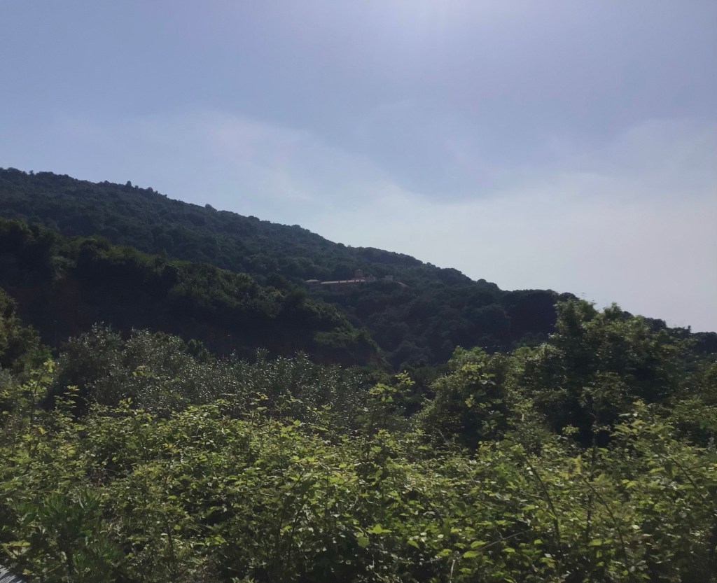 La côte devient découpée. La route serpente de crique en crique. A une grosse montée succède une grosse descente. C’est rude mais je me régale. C’est beaucoup moins monotone que ce matin. De temps en temps, une belle surprise surgit au détour d’un virage. Ici, il s’agit d’un monastère perché dans la montagne et caché par la végétation.