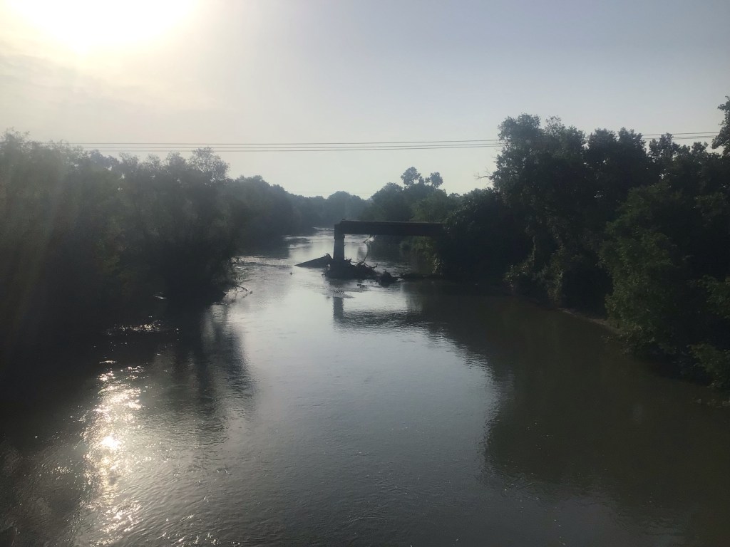 Et quand je dis «rivière », ce sont de vraies rivières avec de l’eau qui coule. Pas des cours d’eau à sec ou presque comme j’ai beaucoup vu dans d’autres régions. De plus, le système d’irrigation très performant facilite ces nombreuses cultures. Il y a même des champs de maïs qui demande énormément d’eau. Je finis par rejoindre la route qui longe l’autoroute A1. Je traverse un antique pont en bois parallèle à celui plus moderne du réseau autoroutier.