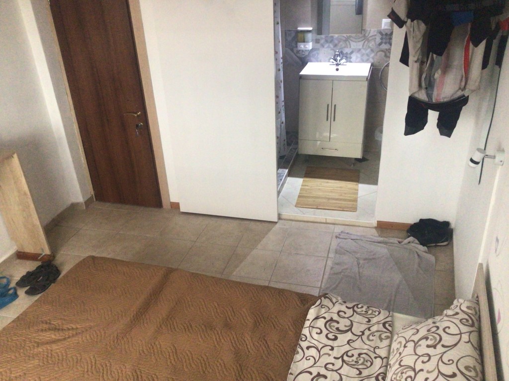 A 14h, je suis devant l’adresse de ma réservation qui se trouve dans une petite rue parallèle à la promenade. Il y a un digicode dont je ne connais pas le code d’ici. Je frappe à la porte en verre. Un gars qui a l’air complètement dans les vapes m’ouvre, me dit d’appeler le propriétaire et me claque la porte au nez. Sympa. J’appelle donc. Répondeur. Je laisse un message. Quelqu’un dans la rue me hèle en français. C’est le proprio. La cinquantaine bedonnante. L’air rassasié et satisfait. Il me propose de prendre un studio, où je peux déposer mon vélo dans l’entrée, plutôt que la chambre avec SDB commune. Mais à la condition qu’il annule la réservation Booking.com et que je lui règle les 25€ en liquide. Pas de problème mon gars. Le studio est neuf, climatisé, frigorifié et SDB indépendantisée. C’est parfait.