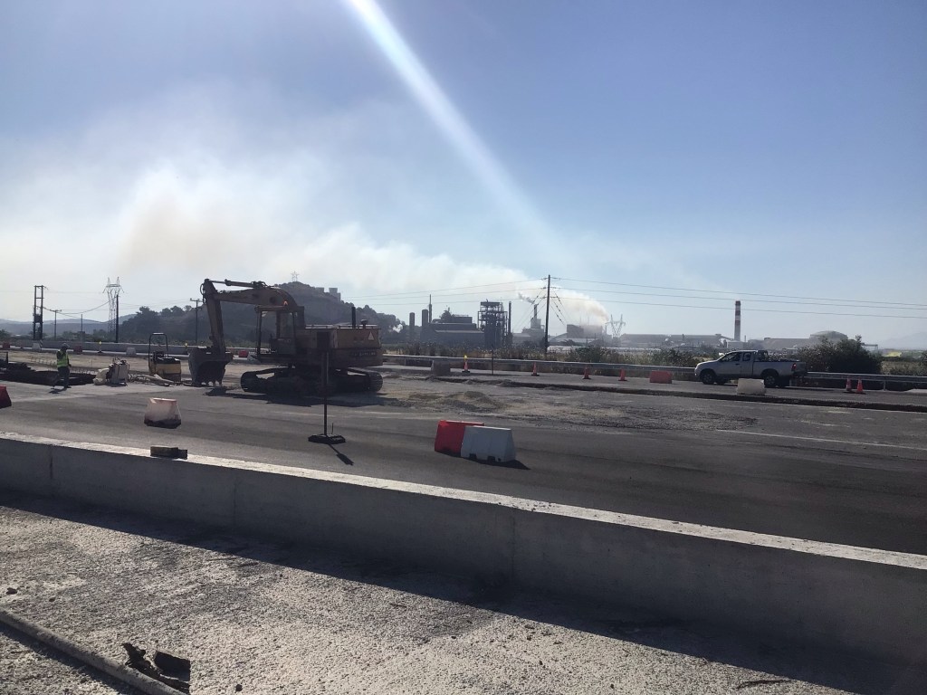 Je quitte sans regret cette ville et continue toujours sur la route EO2. Le profil devient plus plat mais c’est toujours aussi moche. A un moment, je longe l’autoroute A2 en travaux avec une usine au fond. Bonjour l’ambiance !