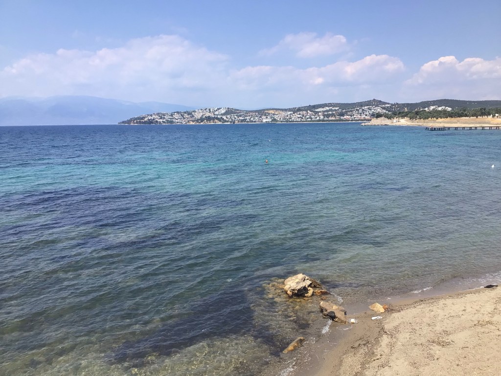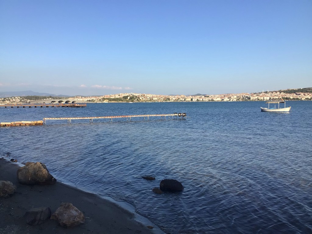 Alors que la route évite cette fois-ci la ville de Akçay, je fais un détour pour suivre le front de mer et m’arrêter boire mon çay. Ce qui est cohérent dans cette ville ! Le patron parle un peu anglais. Il travaillait dans la marine marchande et connaît Lyon. Je repars en suivant le front de mer par une belle piste cyclable. Je suis doublé sur ma droite par deux jeunes femmes : l’une habillée à l’occidentale (short et tee-shirt), l’autre à l’orientale (couverte de la tête au pieds).