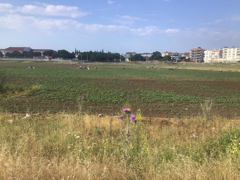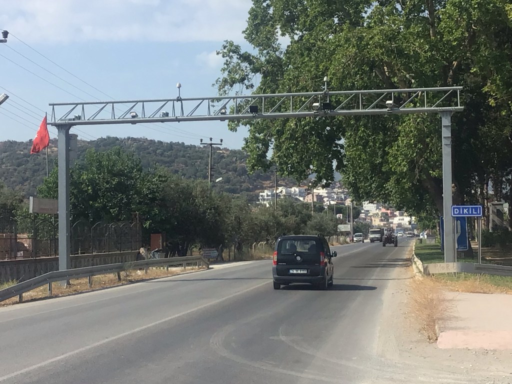Forcément mes pensées s’envolent vers mes compagnons de L’Arche. A cette heure-ci, ils doivent être soit sous les serres de Maniban, soit en plein champ aux Quinze-Sols. Quant à moi, je pédale ! Je finis par quitter la D550 pour bifurquer vers la mer et la ville de Dikili. Je quitte également la province de Balikesir pour entrer dans celle d’Izmir. Comme sur de nombreuses routes, des portiques (à la Ségolène !) supportant des radars, permettent de contrôler la vitesse.