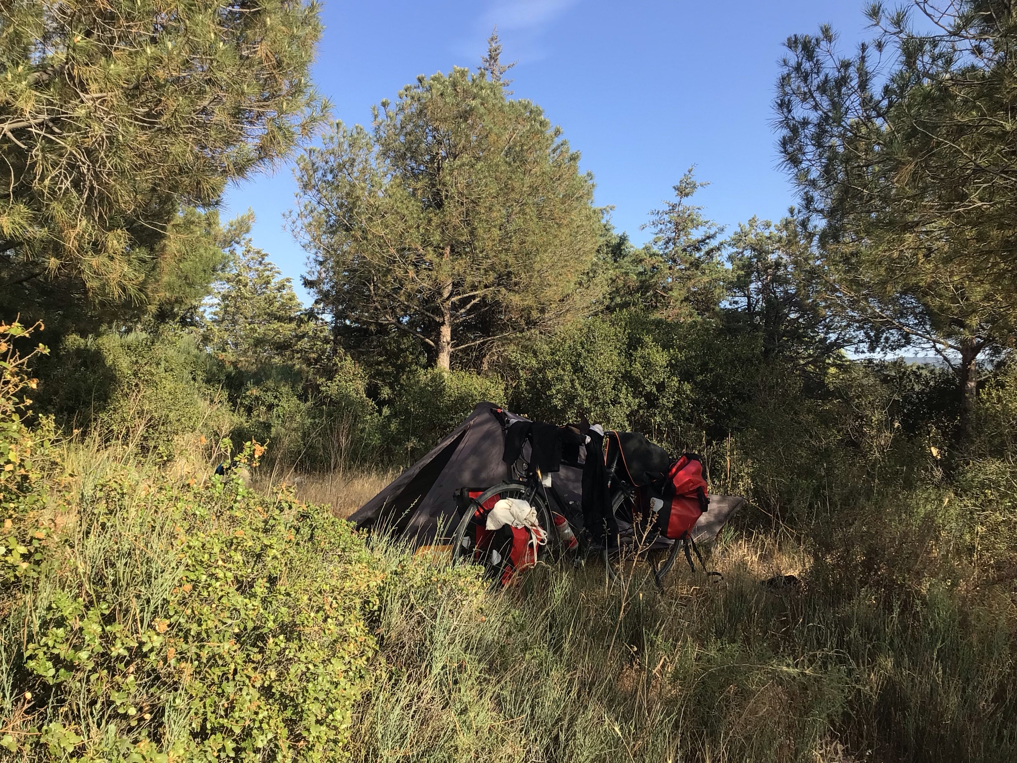 Résumé : 95kms, 5h55, 16,1km/h, beau, bivouac