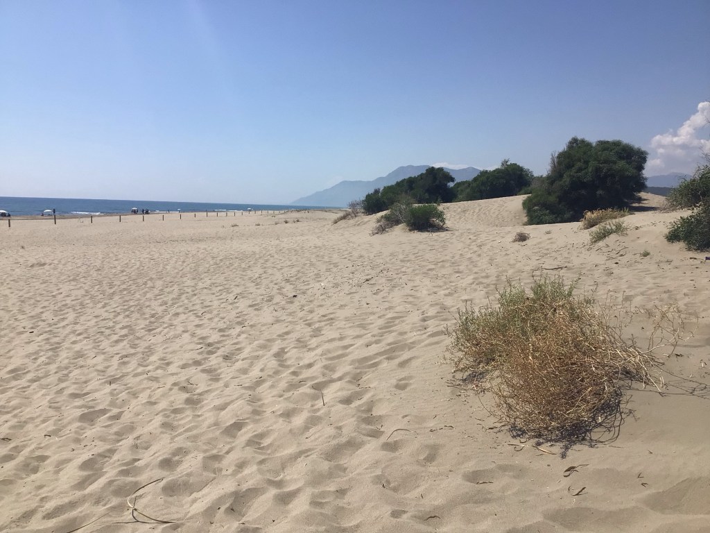 Arrivé au fond de cette vallée, je bifurque à droite en direction du site archéologique de Patara. Auparavant, je vais faire un tour sur la plage de Patara, l’une des plus belles de Turquie avec ses dunes de sable fin.