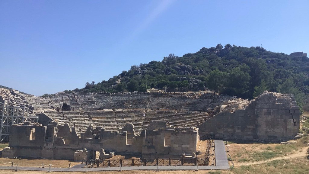 Le parking pour accéder à la plage est blindé. Celui pour le site beaucoup moins. Cette ville était un ancien port. La mer s’est retirée. Ne reste que les vestiges dont ce superbe théâtre.