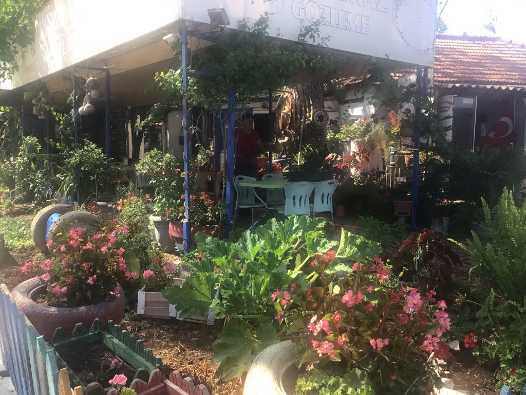Je continue ma route jusqu’en haut de ce col avec ensuite un gros carrefour multi-directionnel. Je prends la route D350 en direction de Fethiye en bord de mer où j’étais il y a quelques jours. Quelques kilomètres plus loin, je m’arrête dans ces endroits en bord de route que j’affectionne particulièrement. C’est une forte femme au regard noir, au tee-shirt rouge et à la main verte qui tient la boutique. En toile de fond, un reportage sur les inuits passent à la TV. Drôle de contraste.