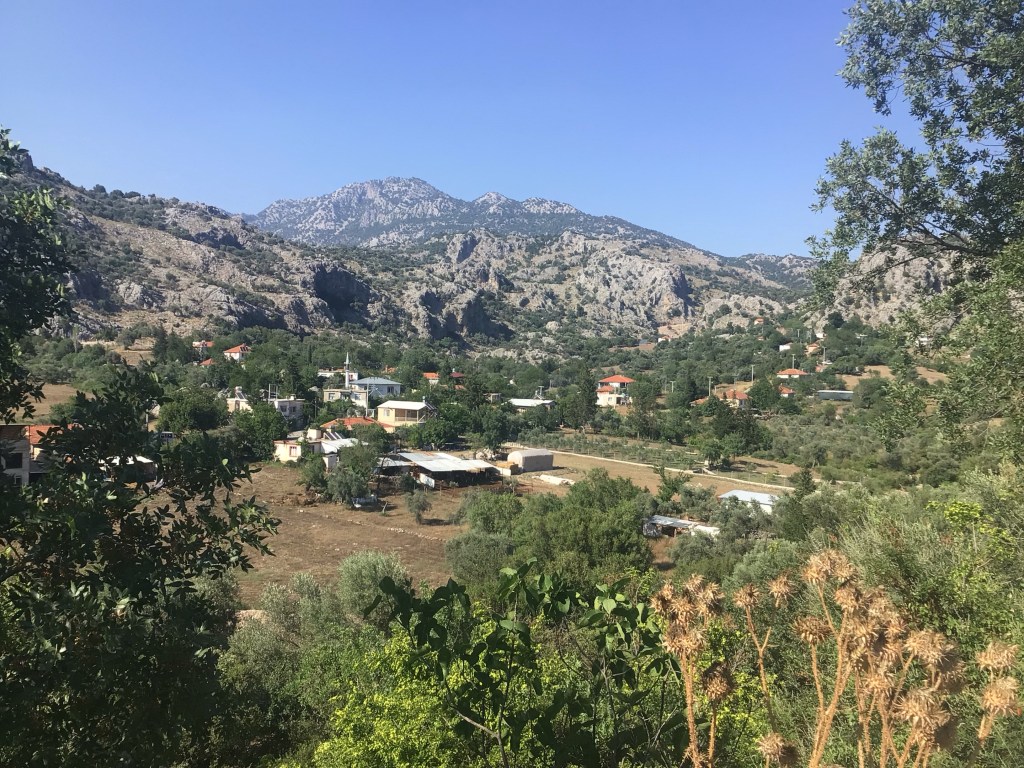 Après pas de mal de journées à circuler sur de grands axes fort empruntés et de longer des stations balnéaires, je retrouve enfin ce plaisir intense de rouler sur de petites routes de campagne, écouter et sentir la nature, saluer les personnes croisées, retrouver un rythme apaisant et « à paysan », entendre le muezzin lancer l’appel à la prière. D’ailleurs, il est 17h et c’est ce qui se passe au moment où je longe ce village à flanc de montagne.