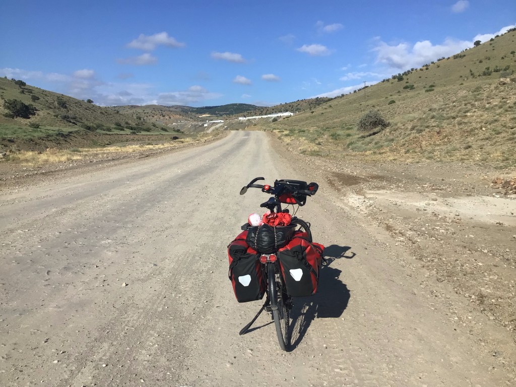 Vers 7h30, je sors de ce dangereux chemin pour suivre l’itinéraire vélo conseillé par Maps.me. Au bout de quelques kilomètres, je me retrouve sur une mauvaise piste dans la montagne. Elle mène aussi à des carrières. Je ne croise que des camions dégageant de la poussière. Puis un panneau indiquant Ankara m’indique que je suis dans la bonne direction.