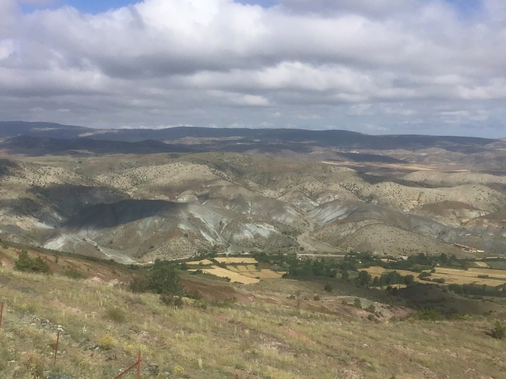 Les paysages sont à nouveau superbes mais que c’est rude. Par moment, je suis encore obligé de monter en danseuse à 4 ou 5km/h tellement la pente est forte. Et, de plus, cela n’accroche pas trop d’autant plus avec mes 2 pneus lisses. A ce rythme, je serais à Ankara dans 10 jours ! J’aperçois au fond la vallée et la ville de Kinkkale.