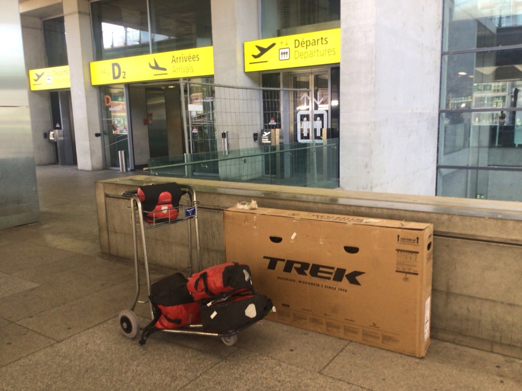 A 11h30 heure locale, j’arrive à Blagnac. Je passe le contrôle frontalier, récupére mon carton et mes sacoches, remonte mon destrier, pars à vélo à l’atelier-vélo de L’Arche chercher les clés de mon appart’, dépose mes sacoches, passe au marché faire quelques emplettes et saluer mes amis de l’Arche, revenir chercher mes sacoches et rentrer au bercail.