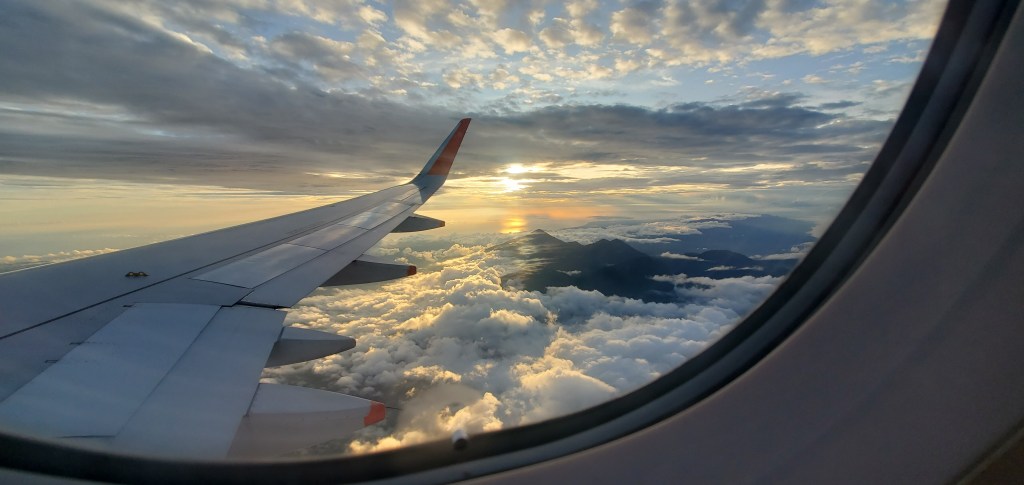 La nuit a été pour le moins compliquée. Pourtant j’avais mis mes boules Quiès et mon masque sur les yeux pour m’isoler un maximum. Arrivé à Singapour, tous les passagers doivent descendre de l’avion puis repasser par la case « Contrôle » avant de remonter dans le même avion une fois celui-ci nettoyé. Je retrouve ma place sandwich mais avec deux autres personnes en guide de pain. Après un vol de 2 heures environ, l’avion se pose enfin à Bali Denpasar … avec 2 heures environ de retard. Il est 22h heure locale.