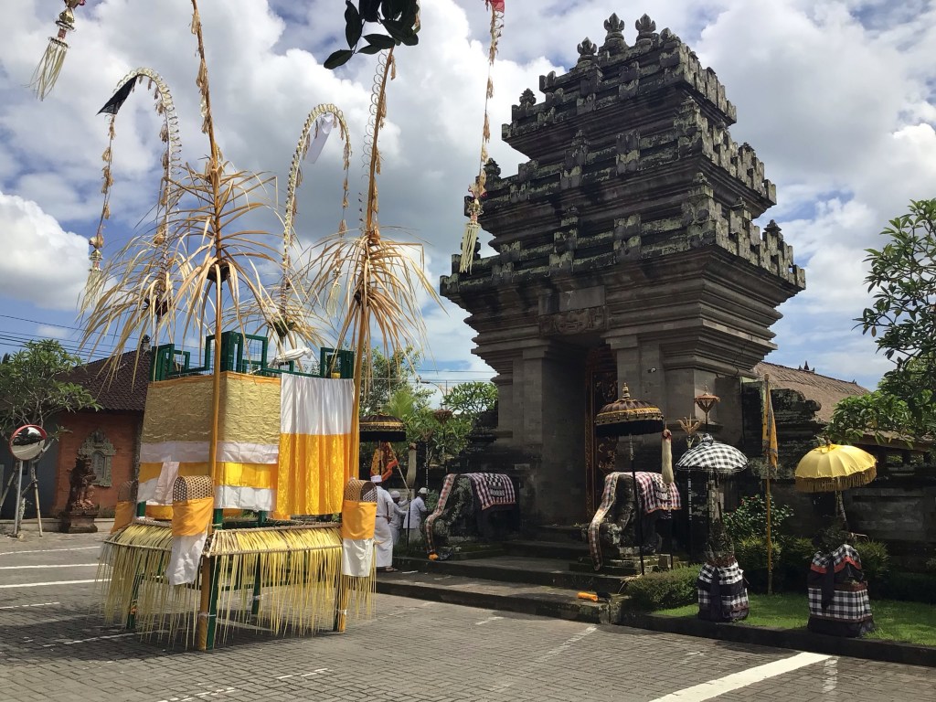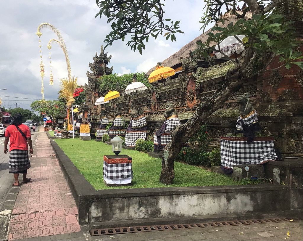 Cela faisait vraiment un bail que je n’avais plus conduit un tel engin. Je crois bien que, la dernière fois, c’était dans les Cyclades il y a plus de 35 ans ! De plus, avec la circulation à gauche, je redouble de prudence. Je m’arrête pour faire le plein avec quelques euros. Nous empruntons de petites routes pour revenir à l’hôtel. La circulation, notamment de scooters, est impressionnante. Nous nous arrêtons pour déjeuner de plats typiques. Les balinais s’avèrent très souriants et accueillants. Par contre, j’ai beaucoup de mal à les comprendre lorsqu’ils parlent anglais. Il va falloir que l’oreille s’habitue.