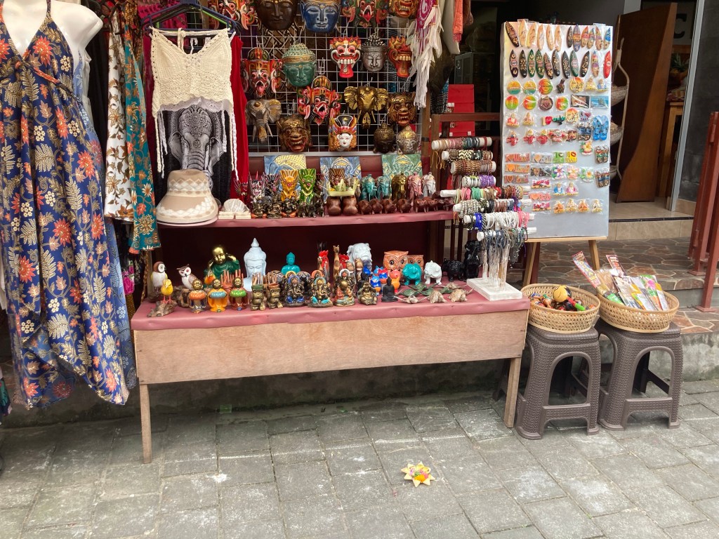 J’avais prévu de me réveiller plus tôt ce matin. Mais, comme j’ai eu du mal à trouver le sommeil, j’émerge vers 9h. J’aurais bien aimé aller courir mais cela me semble très compliqué et, surtout, très risqué. Il n’y a pratiquement aucun trottoir ou cheminement le long des routes. Comme le trafic est vraiment trop dense et que partir dans la pampa me paraît pour le moins aléatoire, je m’abstiens. Je décide donc de passer la journée à Ubud, foyer de l’art balinais et conservatoire des traditions, qui se trouve à une dizaine de kms au nord de l’hôtel.