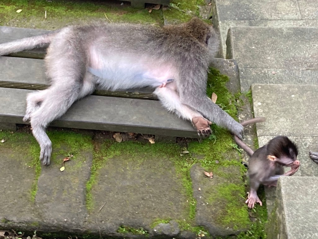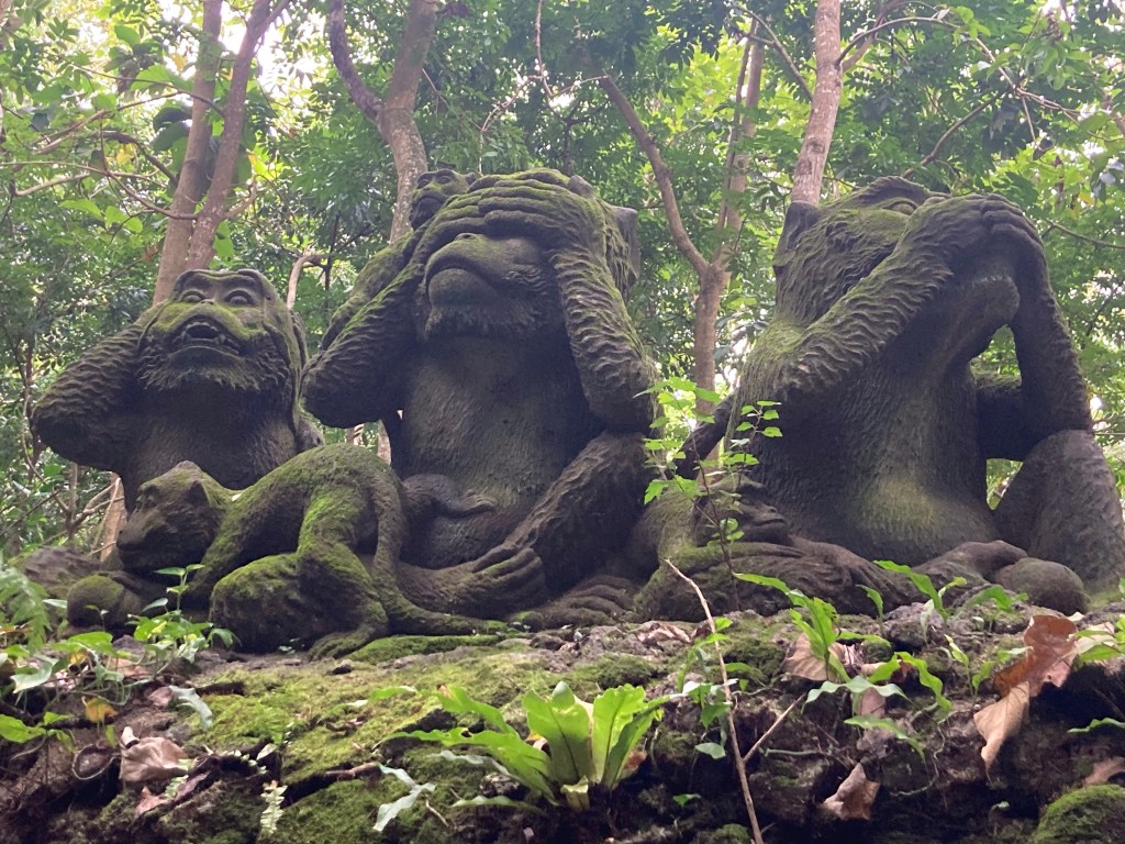 Alors que quelques gouttes commencent à tomber, je reprends mon scooter pour me diriger à la sortie de la ville puis aller me promener dans l’immense parc de la Forêt des singes.