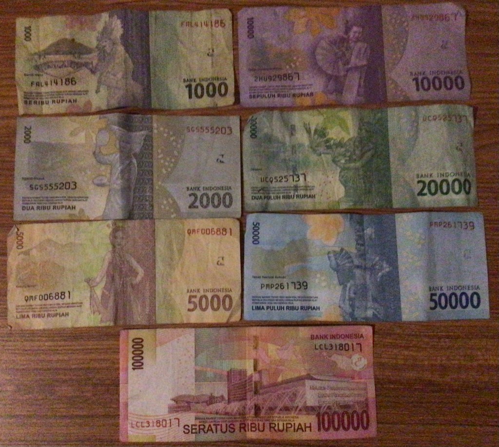 Puis, après avoir repéré un ATM qui accepte la carte Visa, je pars à scooter à quelques encâblures de mon hôtel. Le fiston m’a expliqué mon problème de retrait. Ces ATM sont alignés sur le modèle nord-américain avec le choix de comptes à débiter (checking, saving ou credit). J’avais choisi la 3è option. Il fallait prendre la 1ère. J’obtiens enfin mes billets style Monopoly que voici :