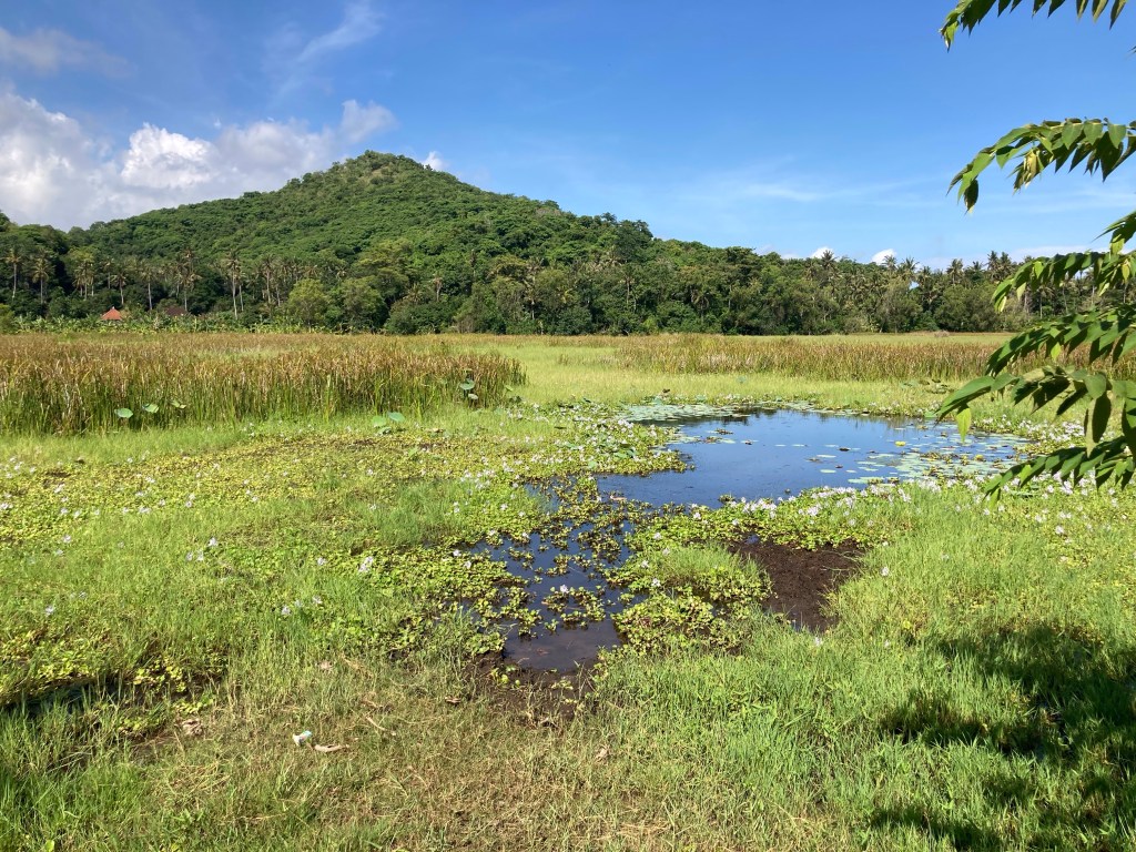 A force de tournicoter, je finis par abandonner mon idée et redescends vers la mer. Avant cela, je me pose sur une terrasse en bambou pour siester devant le lac Danau Yeh Malet envahi par la végétation en cette période de mousson.