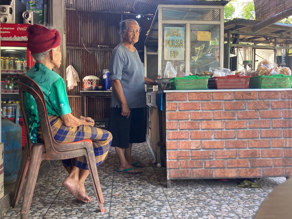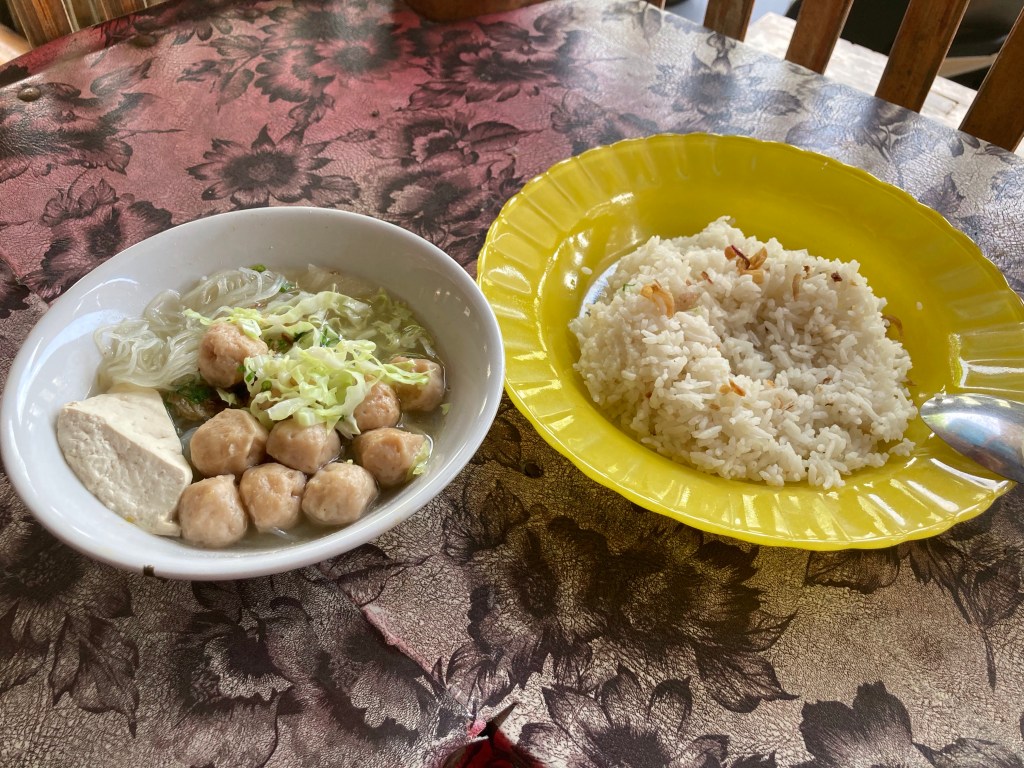 Je commande le plat unique du jour (boulette de viandes et tofus avec son riz) puis prends un café balinais accompagné d’un gâteau (sous cellophane) pour la modique somme de 15.000 IDR (à peine 1€ le repas).