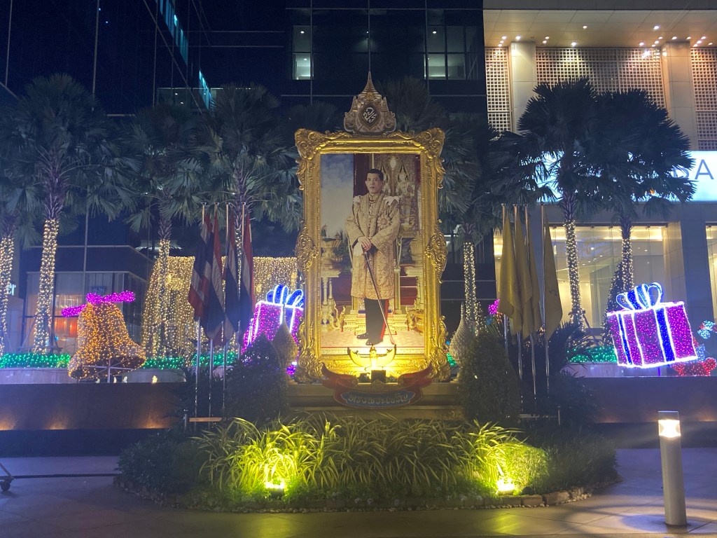 Après avoir passé la journée assis et enfermé, nous décidons d’aller prendre l’air. Un grand parc se trouve à quelques encâblures. Des joggeurs et des culturistes du soir s’adonnent à leur passion. Demain, ce sera notre tour ! Avant de rentrer, nous saluons Rama X, roi de Thaïlande, dont l’effigie (jeune) est affichée un peu partout.