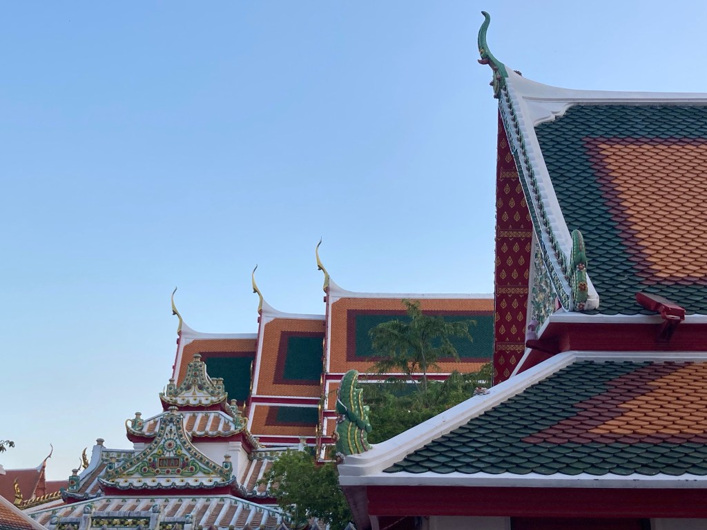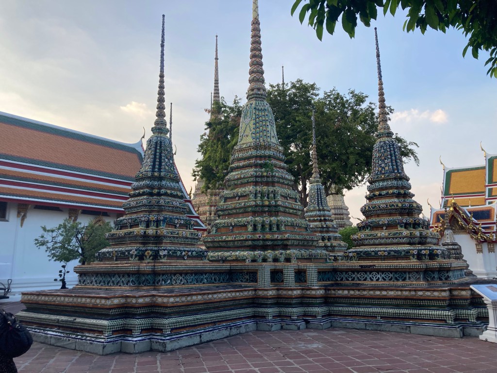 De nombreux temples sont présents dans ce complexe de Wat Pho mais ils sont conçus sous forme géométrique. De plus, l’architecture colorée de ces bâtiments, la forme des toits, la présence de nombreux bonzaïs, tout cela confère à un ravissement de la rétine !