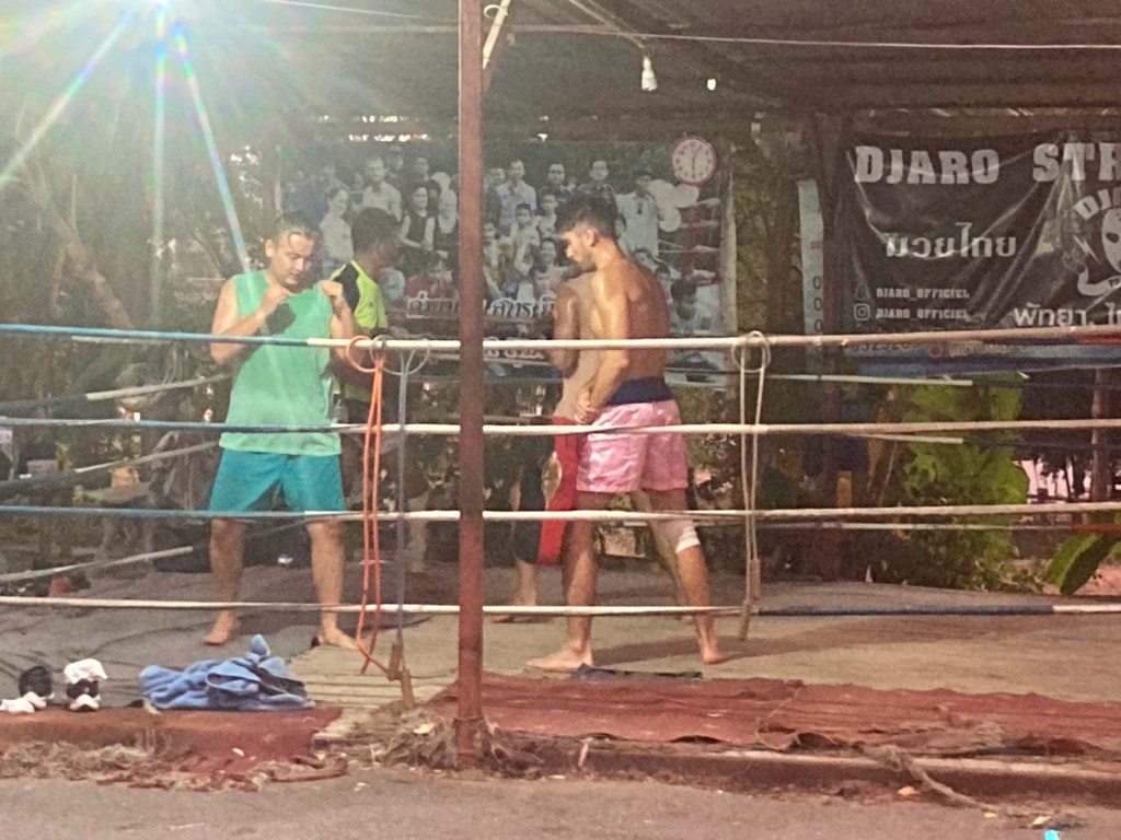 … avant de me diriger en haut de la colline pour regarder un entraînement de boxe thaï, sport national ici.