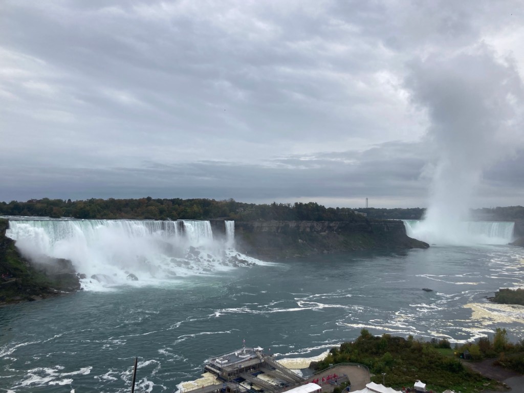 Deux couples se joignent à moi à l’arrière. Un âgé et un plus jeune. Je pense qu’il s’agit des parents de la jeune femme accompagné de son mari. Nous entamons la discussion. Il s’avère que les parents sont canadiens et vivent à côté de Toronto, capitale de la province de l’Ontario. J’y étais avec le fiston au mois d’octobre l’an dernier lors d’un road-trip depuis Montréal jusqu’aux chutes du Niagara. Et on évoquait justement le Canada hier soir en passant devant cette église en bois. Le monde est vraiment petit et les coïncidences troublantes.