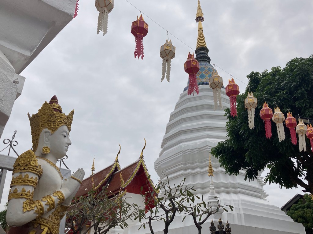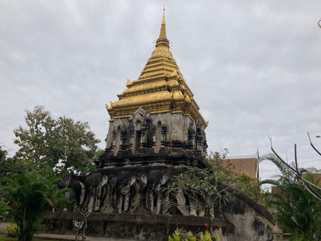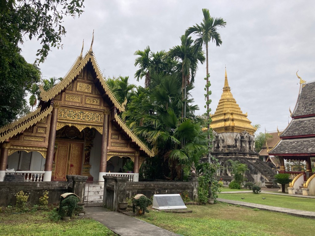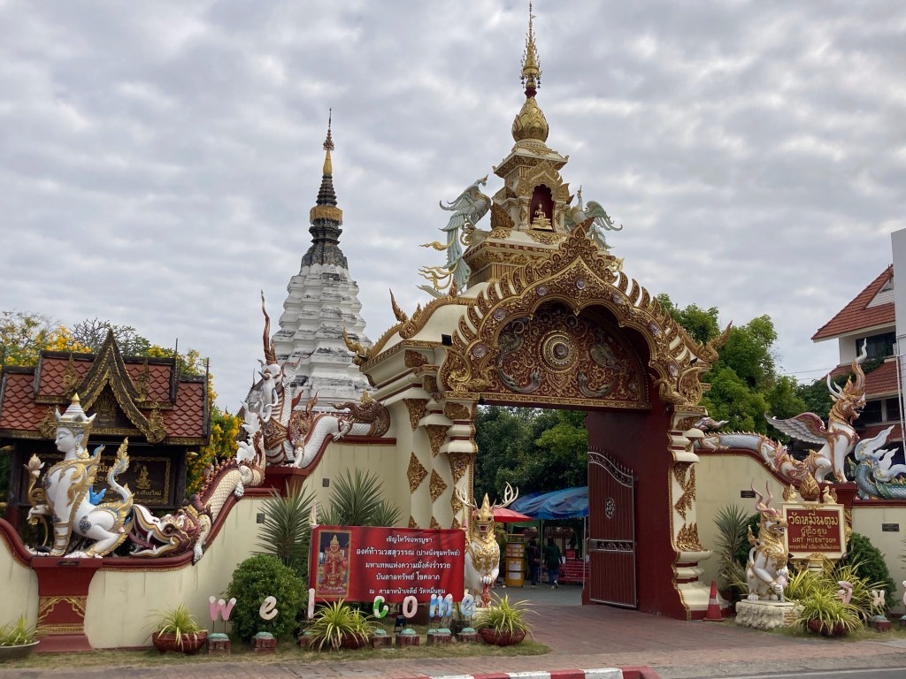 Depuis mon arrivée en Thaïlande, c’est le premier matin où le ciel est plombé. La température est tombée en-dessous 20°C. Après un réveil matinal, je pars vers 9h00 déambuler une dernière fois dans la vieille ville. Je devrais récupérer mon scooter ce soir et j’ai prévu de me balader dans les environs comme je faisais à Bali. En attendant, je vais récupérer mon linge (et un sweat léger bien venu) dans la zone hospitalière. Puis je retourne dans la vieille ville à la recherche des nouveaux temples à visiter. Il faut savoir qu’il y a plus de 300 temples dans tout le secteur. Je n’ai pas, non plus, l’intention de tous les faire !
