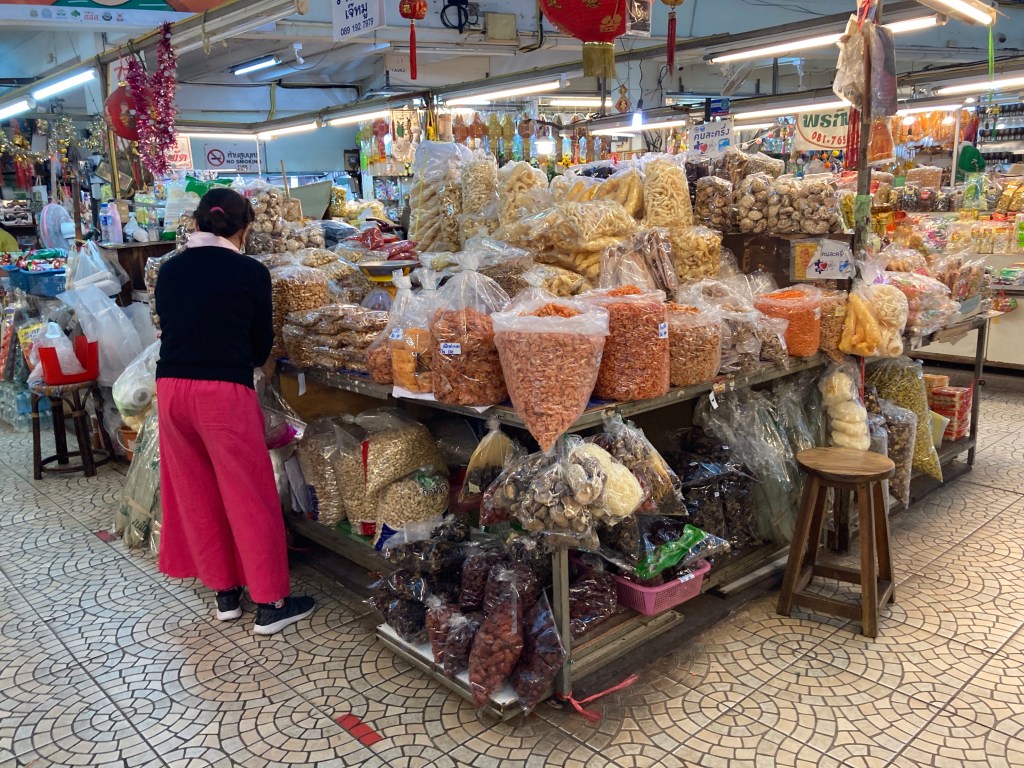 Comme je suis dans le quartier des marchés couverts, je profite de cette occasion pour aller faire un tour à celui de Warorot Market. C’est assez impressionnant. Ce marché se tient sur 3 étages. On y trouve de tout : alimentation, vêtements, bijoux, droguerie … dans un sacré capharnaüm.