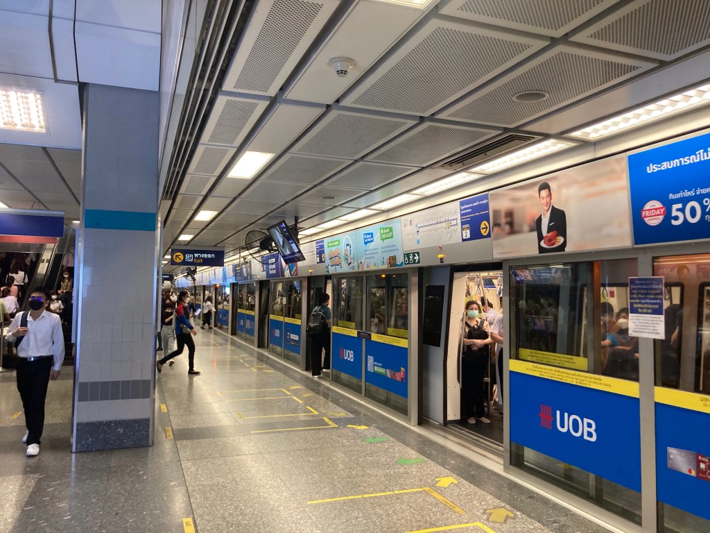 A 8h00 je suis en route direction la station de métro Lumphini à 700m à pieds de l’auberge. A 8h20, la rame arrive. En ce lundi matin, il y a du monde mais ce n’est pas le bordel comme à Paris. De plus, la plupart des thaïlandais sont calmes et respectueux et ne se bousculent pas comme des sauvages.