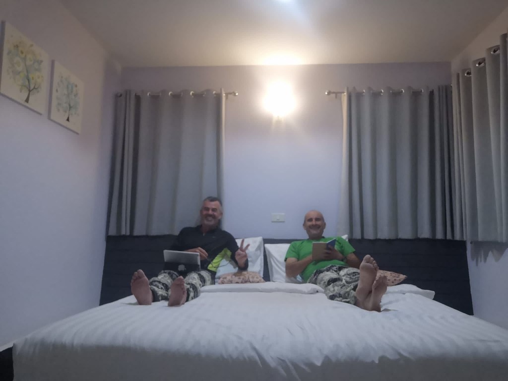 Puis je réserve un van avec l’appli Grab. Quand je précise qu’il y a 2 vélos, le premier contacté annule la course. Le second viendra. Une fois arrivé, il nous faut charger les 2 bestiaux dans cette boite de nuit ambulante sur roues. Et ce n’est pas une mince affaire. Nous arrivons finalement à rentrer le tout sans flinguer ni enceinte, ni fauteuil.