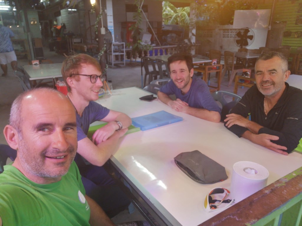 Nous nous régalons. En début de repas, nous avons bien sûr arrosé cette première journée par une bière Leo. J’en ai également profité pour baptiser mon vélo du nom de Haka2 (prononcez akatou) en référence à la couleur de ce vélo (All Black) et la présence de Iain le néo-zélandais, le rouquin aux lunettes.