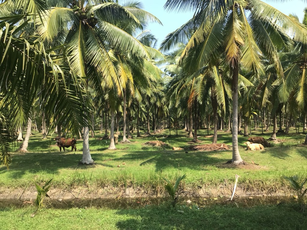 Nous décidons d’un commun accord de continuer notre route jusqu’à Surat Thani plus au sud où un autre port dessert cette île. Les cocoteraies sont toujours aussi verdoyantes et les vaches aussi grasses.